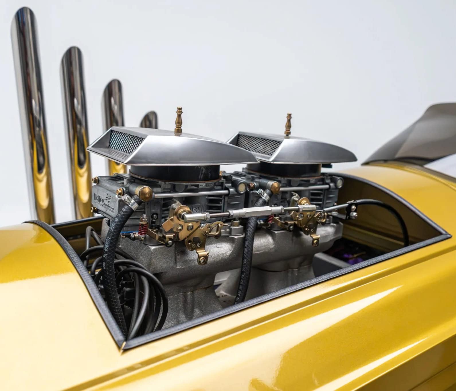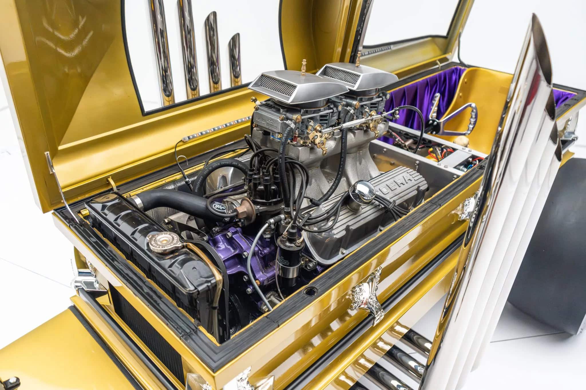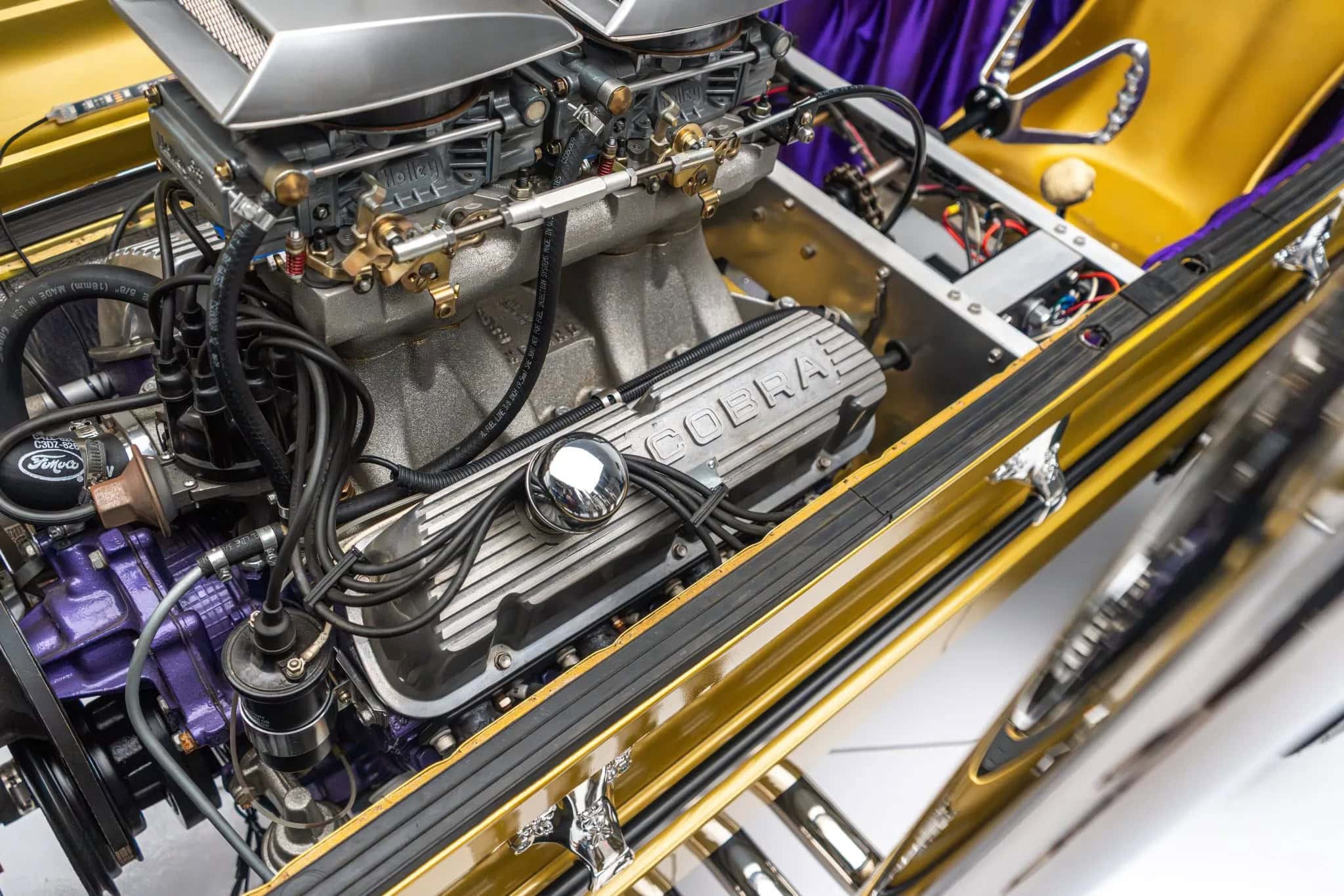 Son moteur est un V8 Ford de 4,9 litres (302 ci) équipé d’un collecteur d’admission Weiand surélevé, de deux carburateurs Holley et d’un échappement de type orgue. Le moteur est associé à une boîte de vitesses manuelle à quatre rapports et à un pont arrière de 9po “à chaîne”. La voiture repose sur un châssis sur mesure avec un essieu avant rigide surbaissé “Super Bell”, des tirants de suspension “en épingle à cheveux” et des freins à disque à l’arrière (rien à l’avant)…