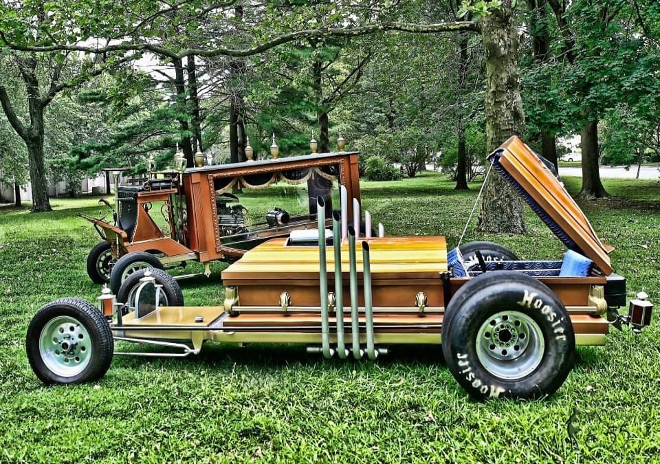 Ce modèle était offert a été vendu puis acheté, revendu et re-acheté une dizaine de fois est à un moment c’était un cadeau offert pour un gagnant de jeux par un casino de Floride et le cercueil roulant a été gagné le soir d’Halloween par une vieille dame… Il est resté introuvable pendant des années avant finalement de réapparaître au “Dead Mans Curve Car Club” de Montville, dans le New Jersey alors que je m’y trouvais par hasard… Voilà, c’est tout…
