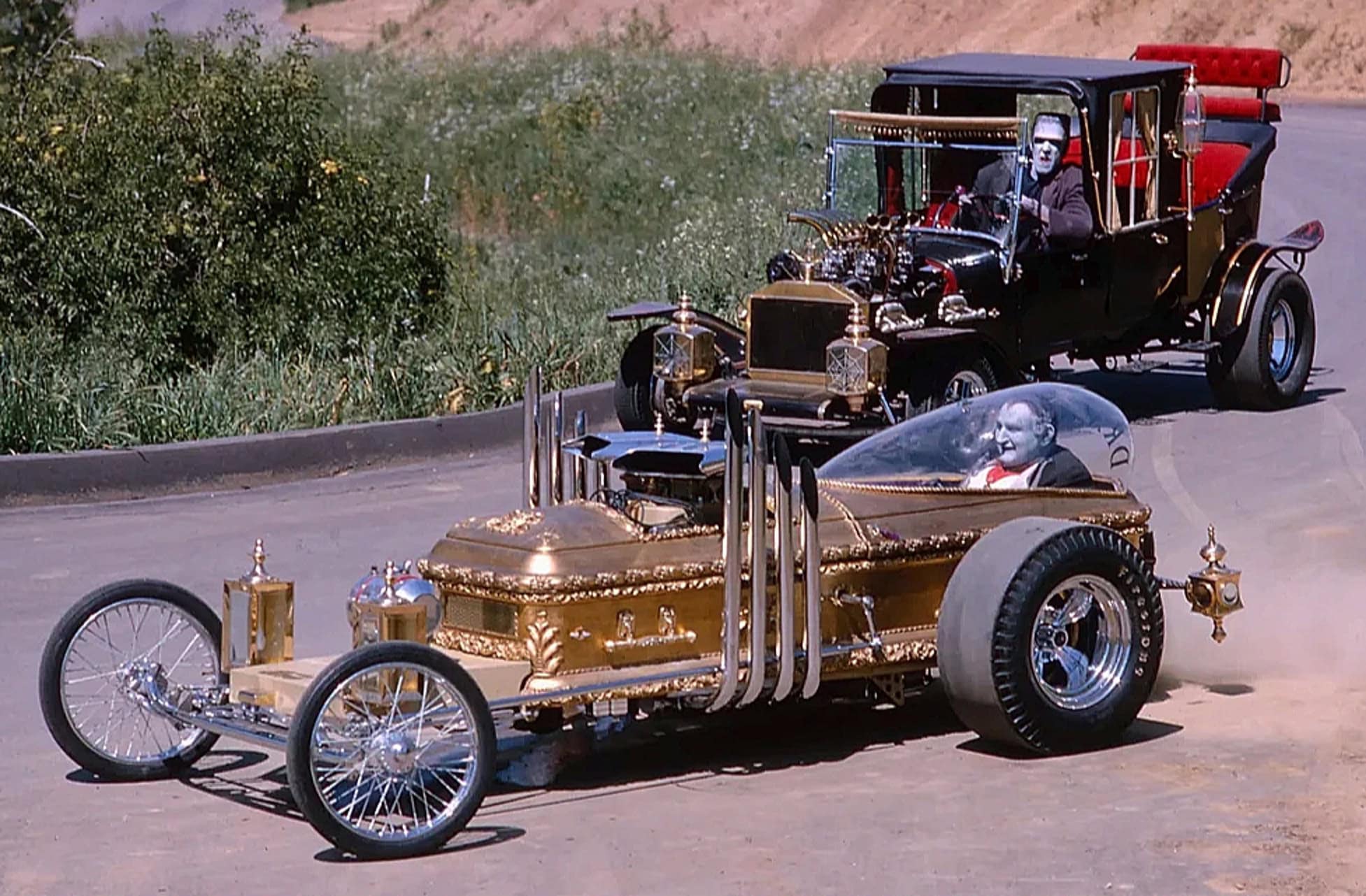 Son influence se fait encore sentir aujourd’hui… Les historiens de la télévision considèrent les performances de Fred Gwynne (Herman), Yvonne De Carlo (Lily) et Al Lewis (Grand-père) comme les vedettes de la série, mais c’est Dragula, le cercueil transformé en dragster construit par Barris Kustom Industries qui a enflammé l’imagination de millions de personnes. “Dragula”, ou plus précisément “Drag-U-La” était un accessoire utilisé par les McCoy…