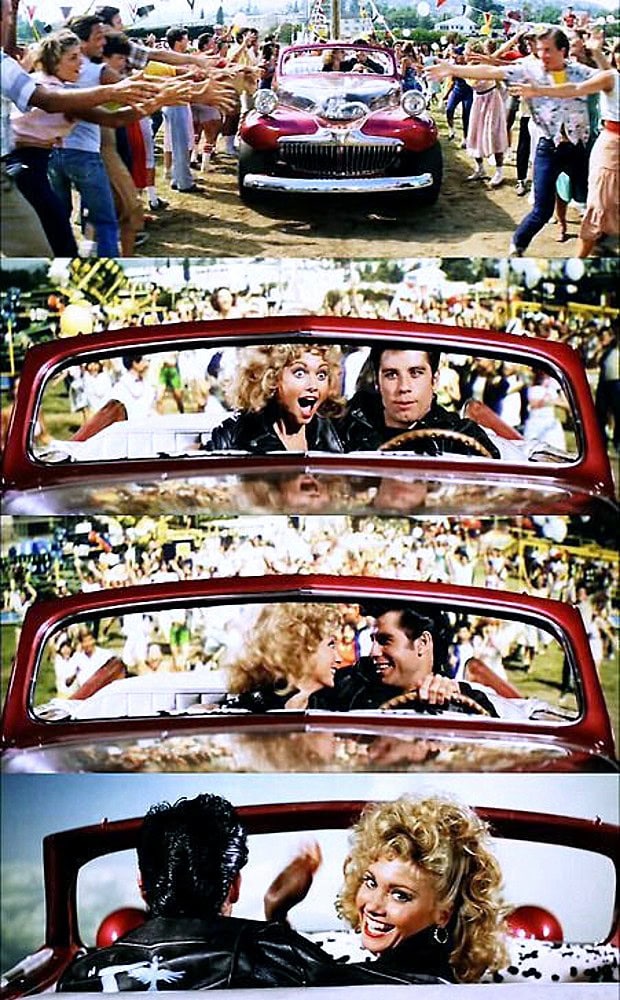 Mais la Paramount met son veto et le rôle est finalement attribué à Sid Caesar. En juin 1977, le tournage commence sur le campus du lycée “Venice High School” de Los Angeles. Dans le scénario, “Grease”, c’est bien sûr l’histoire de Danny et Sandy, mais aussi celle des petits voyous et des pétasses mâcheuses de chewing-gum qui peuplent leurs années lycée. Carr a deviné avec justesse que ce qui intéresse le grand public, c’est la love story entre Travolta et Newton-John, dans une débauche de lumière crémeuse et de Hot Rods et Kustom’s à ailerons, au son de nouvelles chansons populaires à fort potentiel radiophonique. Les fidèles de la version originale, comme la chorégraphe Patricia Birch (une des interprètes de “West Side Story” à Broadway, formée à la danse par Martha Graham et Agnes de Mille, assistent, impuissants, à la transformation de leur comédie musicale piquante en milk-shake sucré…