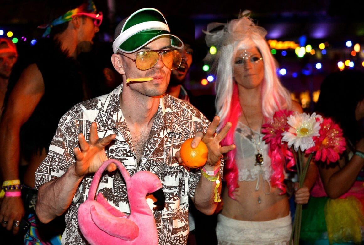 A “La Honda“, les soirées psychédéliques avec Allen Ginsberg, Neal Cassady, l’ami-amant-héros de Kerouac, sous les yeux rieurs du dandy vaguement grotesque Tom Wolfe, inspirent Thompson. Il écrit : “Je suis en train d’étudier ce qui ressemble à une phase de dégénérescence du rêve américain“… Désormais, c’est clair : il ne fera plus que de la fiction sous le couvert du reportage et empochera les dollars. On lui commande un article sur une course automobile dans le Nevada… il revient avec “Las Vegas Parano“, récit halluciné et hilarant d’une virée en décapotable rouge en compagnie d’un ami avocat samoan.