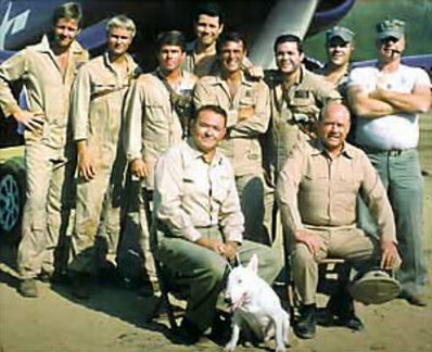 Parmi les dix-sept pilotes participant au tournage, il y avait deux anciens pilotes des Marines qui avaient volé avec le VMF-214 à la fin de la guerre : Glenn Riley et Tom Mooney.