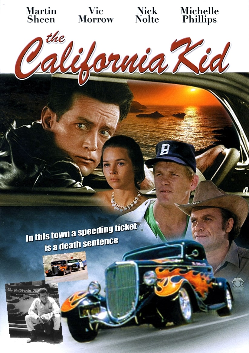 Lorsqu’un automobiliste refuse d’obtempérer, il le balance dans le ravin ! C’est ce qui est arrivé à Don McCord (Estevez.) Alors Michael McCord (Sheen), son grand-frère, débarque à Clarksburg pour le venger au volant de son “The California Kid”, un Hot-Rod qui va devenir célèbre et très copié ! Comme dans les films de motards, il y a les ploucs, un peu neuneus, et le héros, un peu marlou, mais avec un grand cœur. Ce dernier s’arrête à Clarksburg. On retrouve les thèmes de la liberté et de l’argent qui corrompt, propres aux seventies. Puis, on a un face-à-face digne d’un western spaghetti. L’étranger mutique et le shérif se cherchent, puis s’observent…Le duel final ne se règle pas au Colt, mais sur une route, entre le Hot-Rod Ford ’34 de McCord et la Plymouth Fury du shérif.