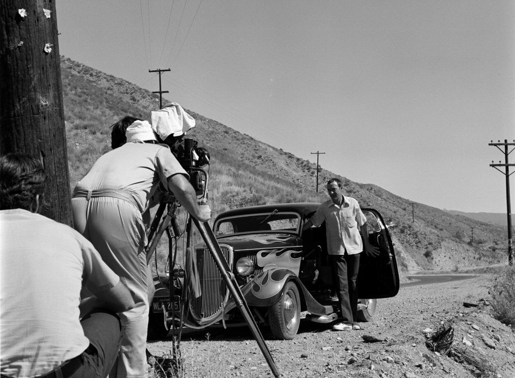 L’histoire est typique de ces années… Un shérif dont la femme et la fille avaient été tuées par un chauffard (avec délit de fuite) sur la rue principale de leur petite ville de SoCal (en réalité “Clarksberg” dans le film et “PIRU” en réalité) devient le défenseur de la lenteur et il arrête les conducteurs qui dépassent la limite de vitesse. Mais il poursuit également les excès de vitesse sur la route de montagne sinueuse à l’extérieur de la ville dans sa voiture de police, une Plymouth de 1957 avec deux grandes barres de poussée à l’avant, avec lesquelles il envoie valdinguer les hors-la-loi de la lenteur… dans le piège d’un virage serré au bord d’une falaise abrupte. Le film s’ouvre sur deux marins en Ford’51 qui roulent au max pour arriver avant la fin de leur “Perm” à la base navale.