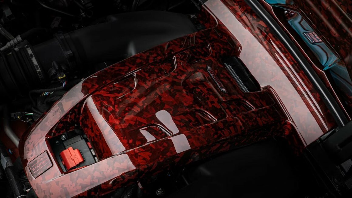 Le style “Gladiator” convient donc vraiment à cette voiture de clown pour jeux du cirque transgenre… Les jantes sont la partie la plus terne de la conception, mais c’est parce qu’elles se fondent dans le reste de cette voiture tuning extrême. Il s’agit de jantes forgées monoblocs mesurant 9,5 x 22 AV et 11,5 x 23 AR. L’anneau intérieur peint qui correspond à la carrosserie étant une touche vraiment coolesque.