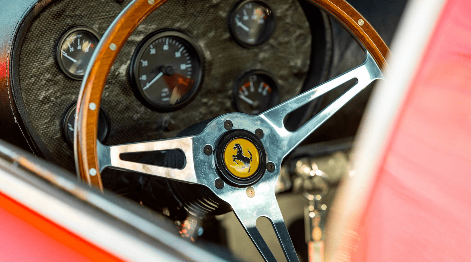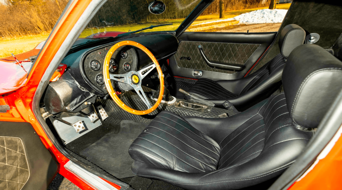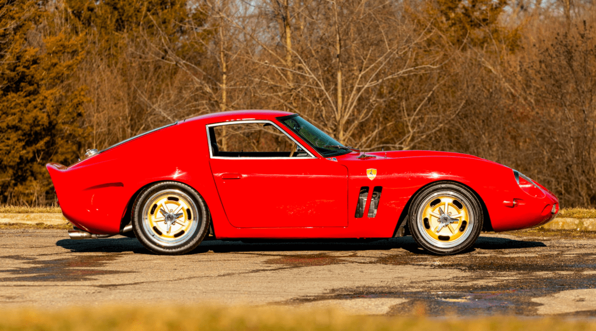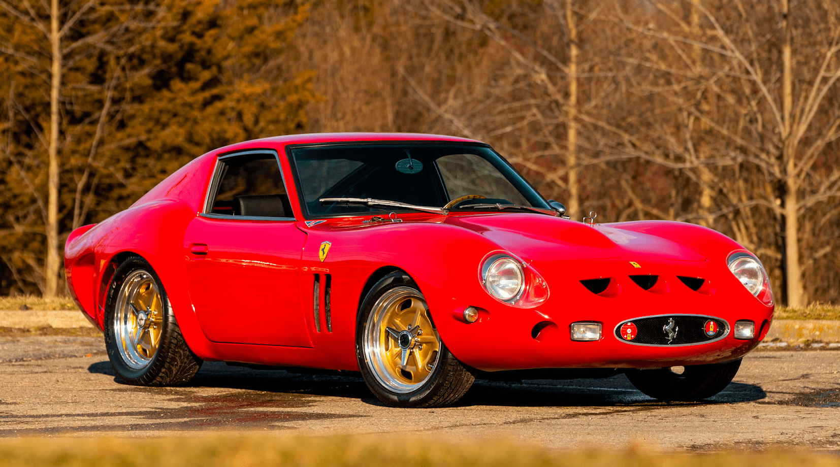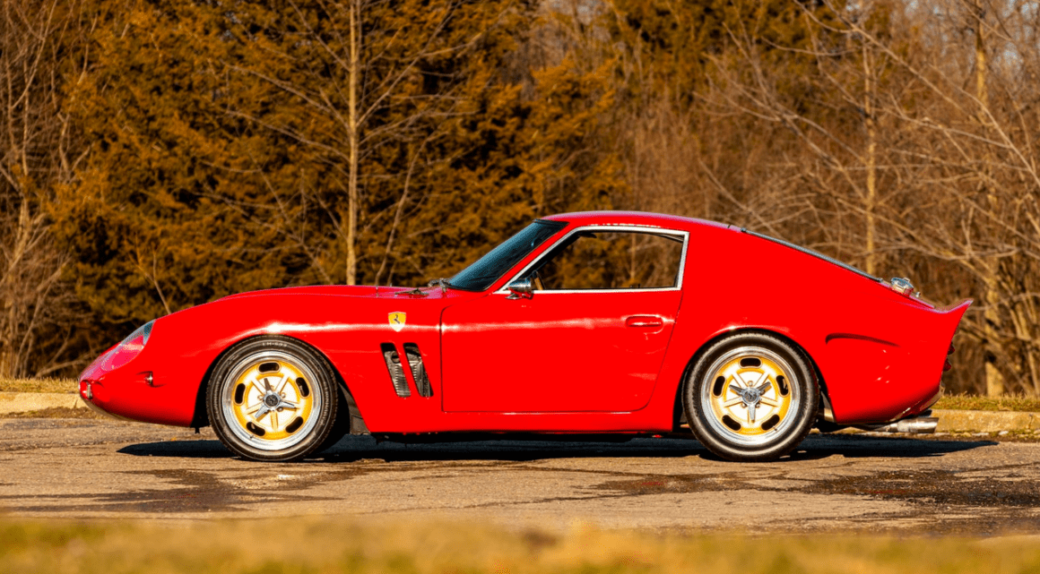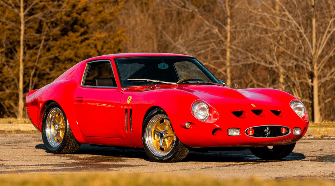 La réplique/évocation Ferrari 250 GTO 1962 que vous voyez ici est une Datsun 280Z reconstruite avec une moche carrosserie en fibre de verre, d’autres jantes et un couvercle cache-soupape marqué (illégalement) Ferrari sur le six cylindres en ligne… C’est cucul à donf mais qu’importe la taille du pénis avant que la femelle le voit avant pénétration… Cette voiture est apparue dans un certain nombre de longs métrages majeurs ainsi que dans une séance photo pour Gucci. Elle va être mise en vente aux enchères avec des scripts de films, des storyboards, ainsi qu’une abondante documentation cinématographique incluant une affiche du film “Ford v Ferrari au Mans” signée par Bob Bondurant… prouvant que c’est une vraie réplique avec pédigree Hollywoodien.