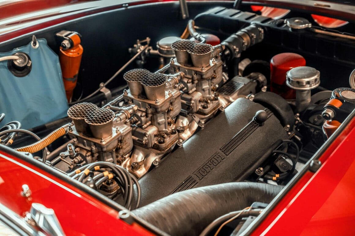Ce n’est pas tout, ce loustic a mis la voiture en réserve en 1981 où elle restera inerte pendant les 24 années suivantes ! À l’automne 2011, la Ferrari 250 GT Lusso de 1963 carrossée par Fantuzzi est allée chez DK-Engineering pour une nouvelle restauration complète ” concours” et, en tant que tel, la voiture a été dépouillée d’un châssis et d’une carrosserie nus. Les moules, dessins et diagrammes ont été réalisés à partir d’une véritable Ferrari 250 GTO et mis à l’échelle avec précision à la taille Lusso pour les différentes persiennes et évents. La voiture a ensuite été apprêtée et peinte en Rosso Corsa et est revenue de peinture au début du mois de novembre 2012, date à laquelle la reconstruction mécanique a commencé.
