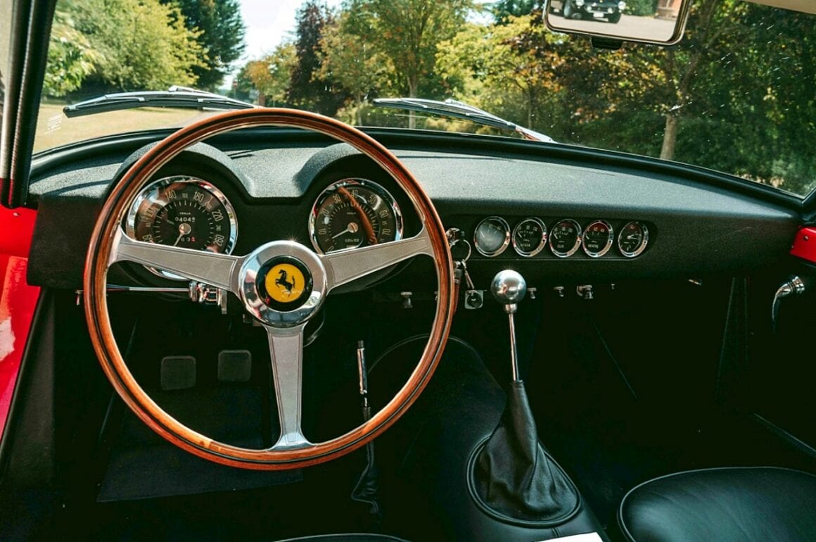 La voiture que j’ai conduite avait un moteur 3,5 litres de milieu de gamme, offrant une puissance théorique de 320 chevaux cabrés pour une utilisation sur route. Bien construits, les moteurs V12 Colombo sont presque indestructibles si on ne les utilise pas… J’ai par contre pu réellement piloter cette réplique qui s’est avérée facile à conduire. La direction assistée est évidement anachronique mais la voiture en a vraiment besoin malgré le grand volant, la Fakerrari est ainsi remarquablement légère à manœuvrer d’autant que ses pneus sont relativement maigres et que son poids à vide est d’un peu plus d’une tonne. Lorsque vous la conduisez “à froid”, vous devez toutefois lentement parcourir quelques kilomètres le plus lentement possible. Comme toutes les vieilles Ferrari, vous devez non seulement prendre votre temps, car il faut un certain temps pour que l’huile se réchauffe suffisamment pour s’inscrire sur la jauge.