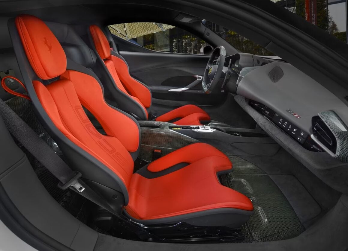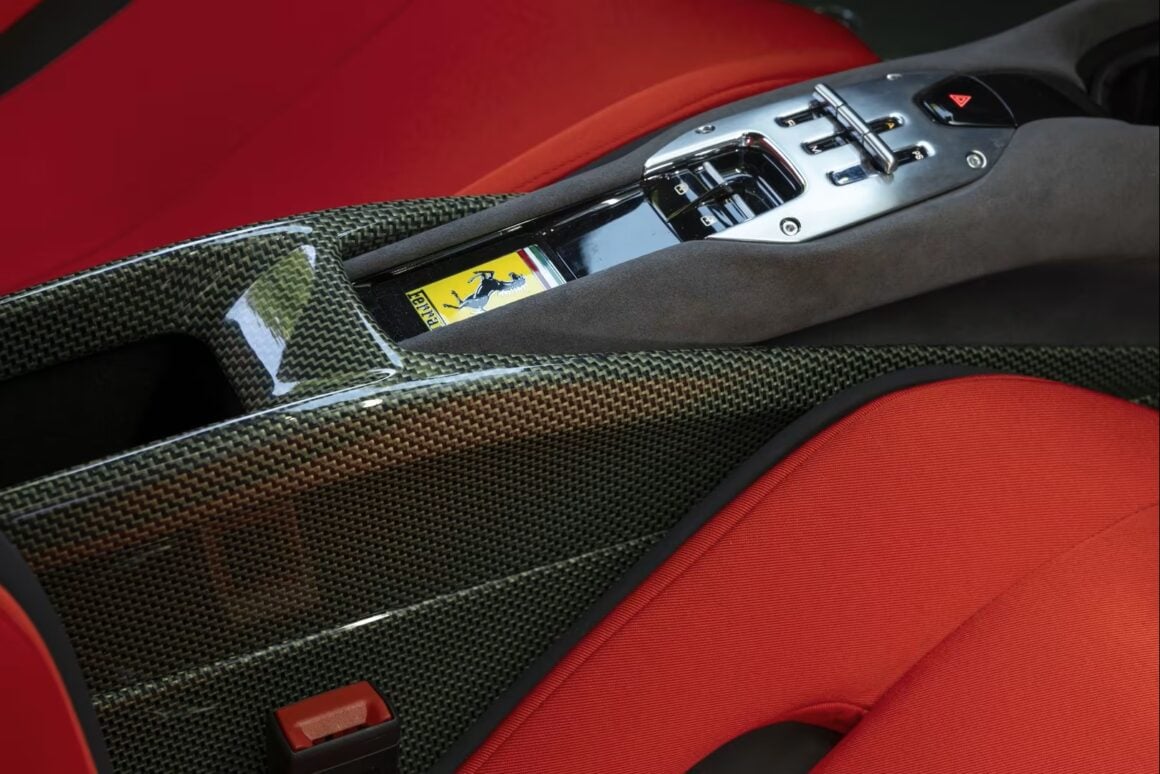 Elles sont reprises par des ouïes plus petites creusées dans les ailes arrière musclées près des passages des roues. C’est du bel ouvrage que la description, car sans ce blavbla bla, on n’y verrai rien qu’une auto peu pratique et inutilisable dans toutes les circonstances de vie… La partie arrière sculptée (par un sculpteur ?) est complétée par un échappement central réalisé en fabrication additive (koi ça veut dire ?), doté d’embouts en titane et fibre de carbone, et par des feux arrière qui évoquent clairement la 296 GTB, dont la voiture est issue. “La vue latérale est dominée par les prises d’air de l’échangeur, une réinterprétation du conduit NACA classique, accentuée par une grande plaque triangulaire en fibre de carbone”… Clairement la vue est occultée par ces “machins/bazars”….