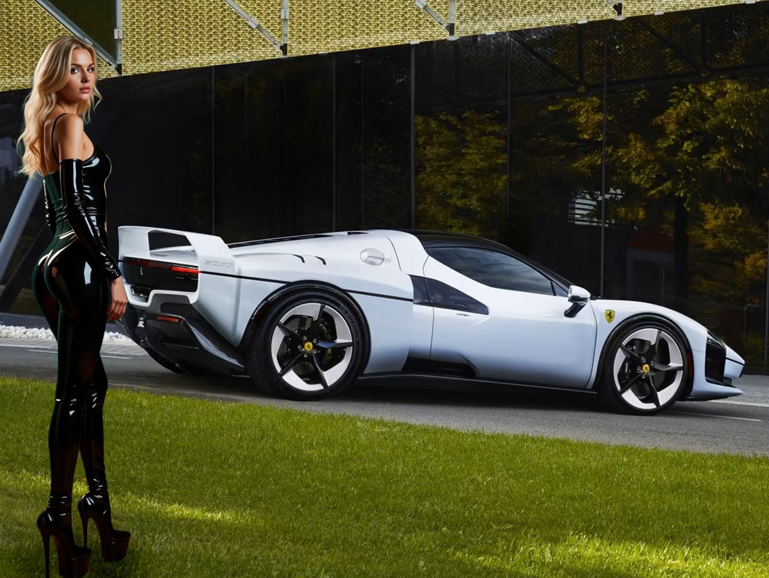 L’attention attentionnée particulière qui a a été portée à l’utilisation du Kevlar, fatigue, on nage dans le ridicule d’une niche de chien au milieu d’un salon Louis XVI de mauvais goût…, Le carbone-Kevlar réinterprété et repensé qui se retrouve dans les repose-pieds, derrière les sièges et sur certaines parties des tapis de sol, ca devient grotesque… Mais arrivant à la fin inéluctable (même du texte) arrive un sursaut de folie sur la couleur blanche teinte extérieure “Blanc SC40″ qui présente la particularité d’être blanc, cette teinte qualifiée de froide (un racisme sous-jacent ?) accentuant les courbes de la carrosserie au soleil.. Fortiche le robot qui a fourni ce texte qui fait partie du programme “Projets Spéciaux” qui vise à créer des Ferrari uniques (appelées One-Off’s). Pffffffff !