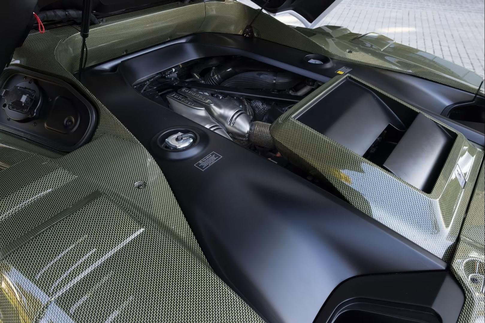 Elles sont reprises par des ouïes plus petites creusées dans les ailes arrière musclées près des passages des roues. C’est du bel ouvrage que la description, car sans ce blavbla bla, on n’y verrai rien qu’une auto peu pratique et inutilisable dans toutes les circonstances de vie… La partie arrière sculptée (par un sculpteur ?) est complétée par un échappement central réalisé en fabrication additive (koi ça veut dire ?), doté d’embouts en titane et fibre de carbone, et par des feux arrière qui évoquent clairement la 296 GTB, dont la voiture est issue. “La vue latérale est dominée par les prises d’air de l’échangeur, une réinterprétation du conduit NACA classique, accentuée par une grande plaque triangulaire en fibre de carbone”… Clairement la vue est occultée par ces “machins/bazars”….