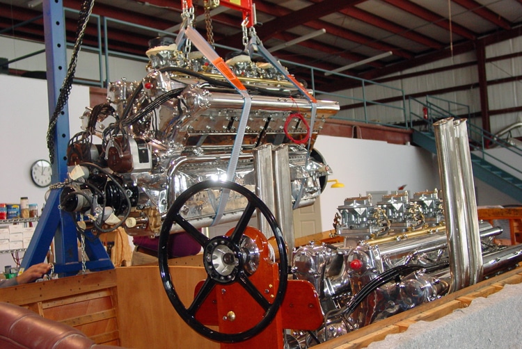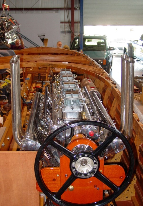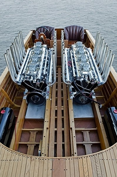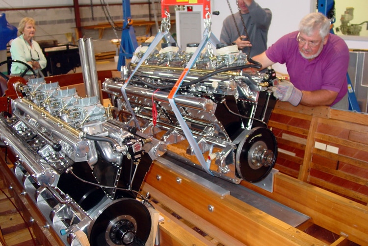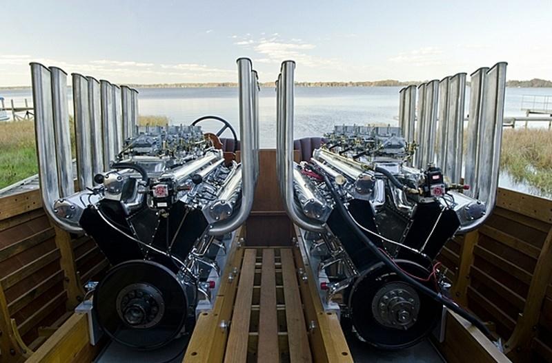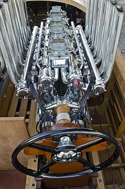 Les Miller relativement légers produisaient environ 1800 ch chacun. Ces moteurs Miller V-16 ont été les derniers à propulser Miss America VIII pour la compétition avec Garfield Wood. Réunis, après 70 ans de séparation, dans une vente Mecum à Kissimmee, en Floride, lors d’un événement sans précédent, peut-être même miraculeux puisque ce bateau de course unique extrêmement célèbre et ses moteurs uniques ont survécu aux 82 dernières années… Le niveau de restauration que les deux ont reçu était le Top du Top !