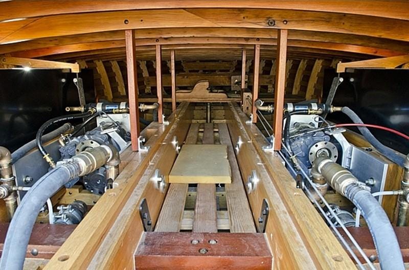 Miss America VIII a été vendu avec une collection de pièces originales de rechange, y compris des compresseurs de style Schweitzer/Cummins Roots. En outre, Orlin Johnson, le mécanicien en chef de Garfied Wood pendant les années Harmsworth, a recueilli une énorme quantité de photos et de documents d’appui de 1905 à 1975. Plus de 1000 articles étaient inclus avec la vente de Miss America VIII venant tout droit de sa collection privée ! Pratiquement tout cela est irremplaçable. Les deux moteurs ont été entièrement restaurés par l’atelier de moteurs de classe mondiale, Zakira’s Garage dans l’Ohio selon des spécifications rigoureuses.