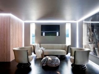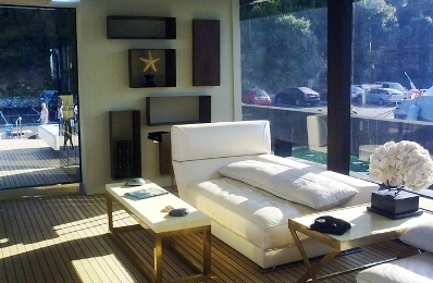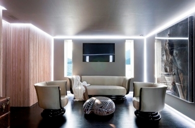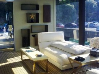 Because a ‘zero speed’ stabilization system would limit the high speed performances of M/Y H2OME one was not fitted however the yacht already features high stability thanks to an extremely low barycentre and reduced height of the superstructure. He salon features a large Fendi designed seating area for guests to relax in plus a library and a projector providing both DVD’s and Sky TV.