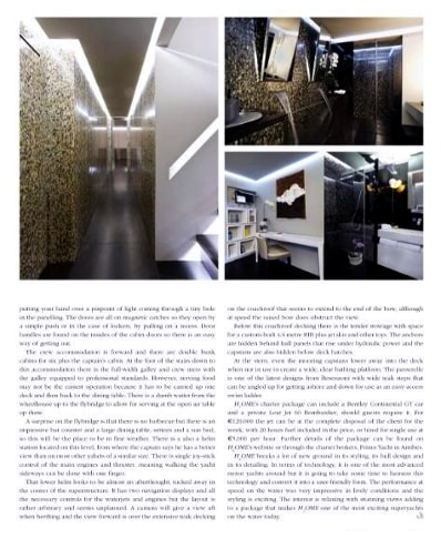 The owner also had personal involvement during the build and is very proud of this innovative project. This unique motor yacht H2OME is one of the few yachts to have a double hull configuration that can be both displacement and planning hull due to the third water jet.