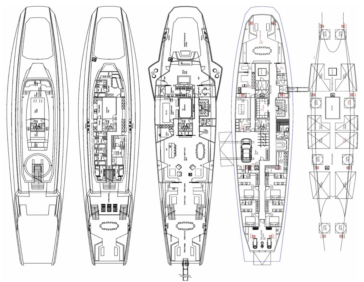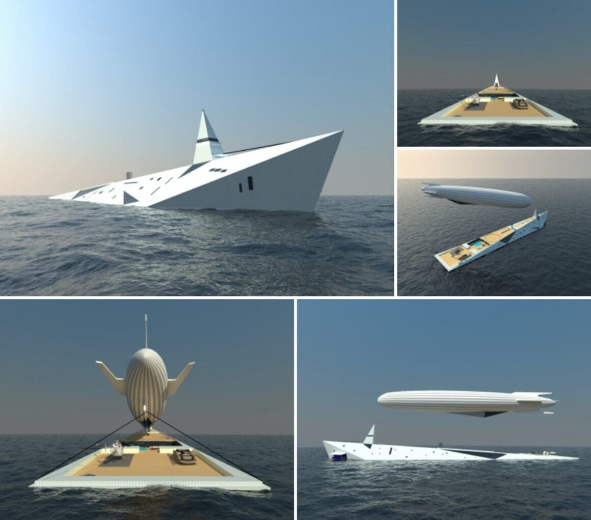 Le Tétrahédron-Pyramidal, l’AirYacht-Zeppelin, le Méga-Jet-Yacht à réaction contrôlable et le Black-Pearl “à voiles et à vapeurs sexuelles”