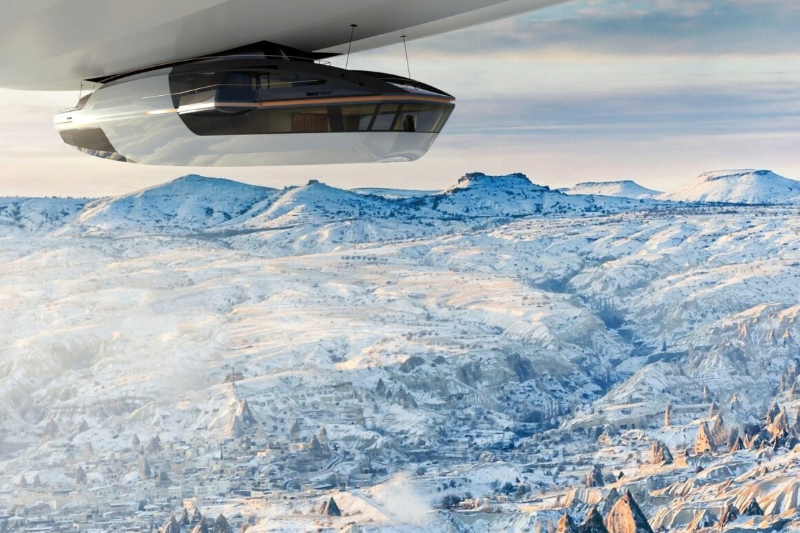 La production de ces avions pour gens richissimes dans cette ère d’avant-guerre ne concernait souvent qu’une poignée d’avions surnommés (déjà) les “yachts aériens” ! L’expérience du yachting-aérien, couplé avec le yachting maritime, partout, absolument partout permettait aux Mégariches de naviguer dans les airs, au dessus et sur les mers et de comme flotter au-dessus de la Terre ! Peu à peu les hydravions privés ont été remplacés par des hélicoptères ayant leur aire et leurs aises sur le pont des Yachts. Et, des Suisses ont ainsi eu l’idée de recréer des Yachts volant au dessus des flots, dans les airs ! Voler au plus proche des éléments, en totale autonomie et dans un confort absolu ! Quel milliardaire amoureux de navigation ou d’aéronautique n’a pas rêvé d’élargir sa ligne d’horizon au champ de tous les possibles ? Fin de l’année dernière ce n’était plus un désir, mais une réalité possible. Réunis sous la création de la société Suisse AirYacht deux personnes avaient en tête de pouvoir réussir la prouesse technologique de faire voler l’équivalent d’un yacht de 60 mètres, sous forme d’une luxueuse habitation détachable de 750 m², grâce à un dirigeable de 200 mètres de long pour pouvoir apprécier des vues fantastiques en toute sérénité, en déceler chaque détail, se poser dans des lieux jusqu’alors inimaginables. Embarquer et désembarquer par une sorte d’ascenseur sans nul besoin d’infrastructure !