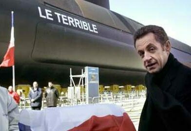 C’est le nouveau sous-marin nucléaire français, quatrième du genre, inauguré par Nicolas Sarkozy. Le président en a profité pour revenir sur la doctrine nucléaire de la France (photo ci-dessus) dans une pose qui fait craindre le pire… Il a proposé hier aux partenaires européens un dialogue sur le rôle de la dissuasion nucléaire Française dans le cadre de la sécurité européenne.Le Sous-marin Nucléaire Lanceurs d’Engins de Nouvelle Génération (SNLE-NG), Le Terrible, est le 4ème de la série.Commandé en juillet 2000 par le ministre de la Défense, le Terrible est équipé d’un système de combat d’un type nouveau, le Sycobs, un système qui équipera également les Barracuda, sous-marins nucléaires d’attaque. Puisque l’Inflexible vient d’être déclassé, il n’y a donc maintenant que : le Triomphant, le Téméraire, le Vigilant en service, rejoints en 2010 par le dernier : le Terrible… Non seulement ils montent en puissance d’équipements, mais en plus, le dernier porte un nom très menaçant contrairement aux autres…