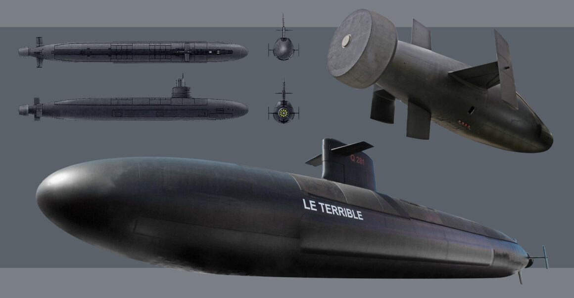 Bienvenue à bord du TERRIBLE… Tout d’abord, Le Terrible est aussi le premier sous-marin dessiné entièrement numériquement, selon un système DAO (dessin assisté par ordinateur) testé sur les vedettes Sawari fabriquées à Lorient pour l’Arabie Saoudite. Ensuite, à la différence de ses trois prédécesseurs, il recevra dès sa mise en service le nouveau missile nucléaire stratégique M51. Plus gros et plus performants que les M45, ces missiles sont pourtant plus légers que les précédents. Un problème se pose alors en cause de cette plus grande légèreté pour conserver la stabilité du navire lorsqu’un missile est éjecté.