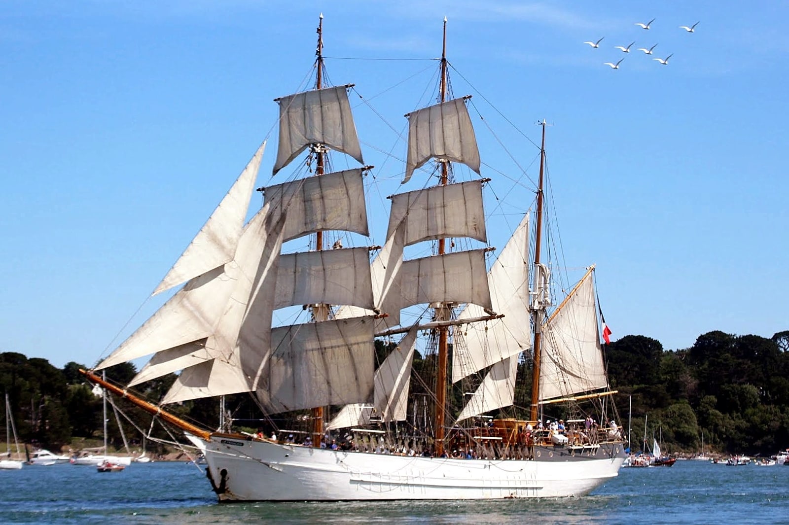 Embarquer sur un trois-mâts de 47m est une expérience exceptionnelle et inédite… avec près de 900m2 de voiles, “Le Français” est un géant des mers, qui se veut un vestige de la marine à voile des 18ième et 19 -ème siècle, mais qui en réalité n’est que le témoin de la tradition maritime, puisqu’il a été construit en 1948 en tant que baleinier, ce qui ajoute une ambiguïté à l’idéologie de la pureté originale des défenseurs de l’environnement et du bien être animal…