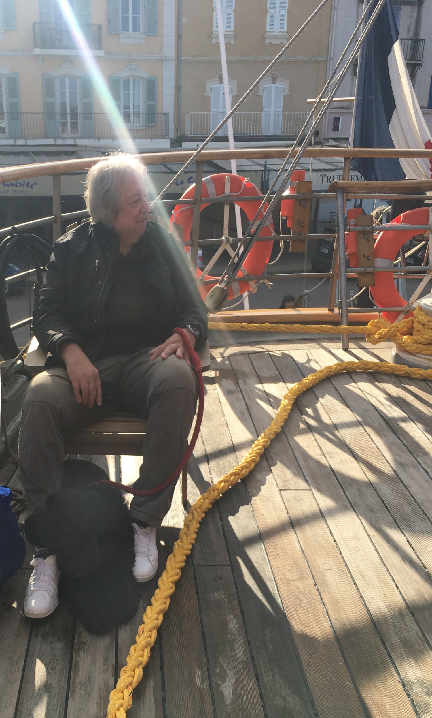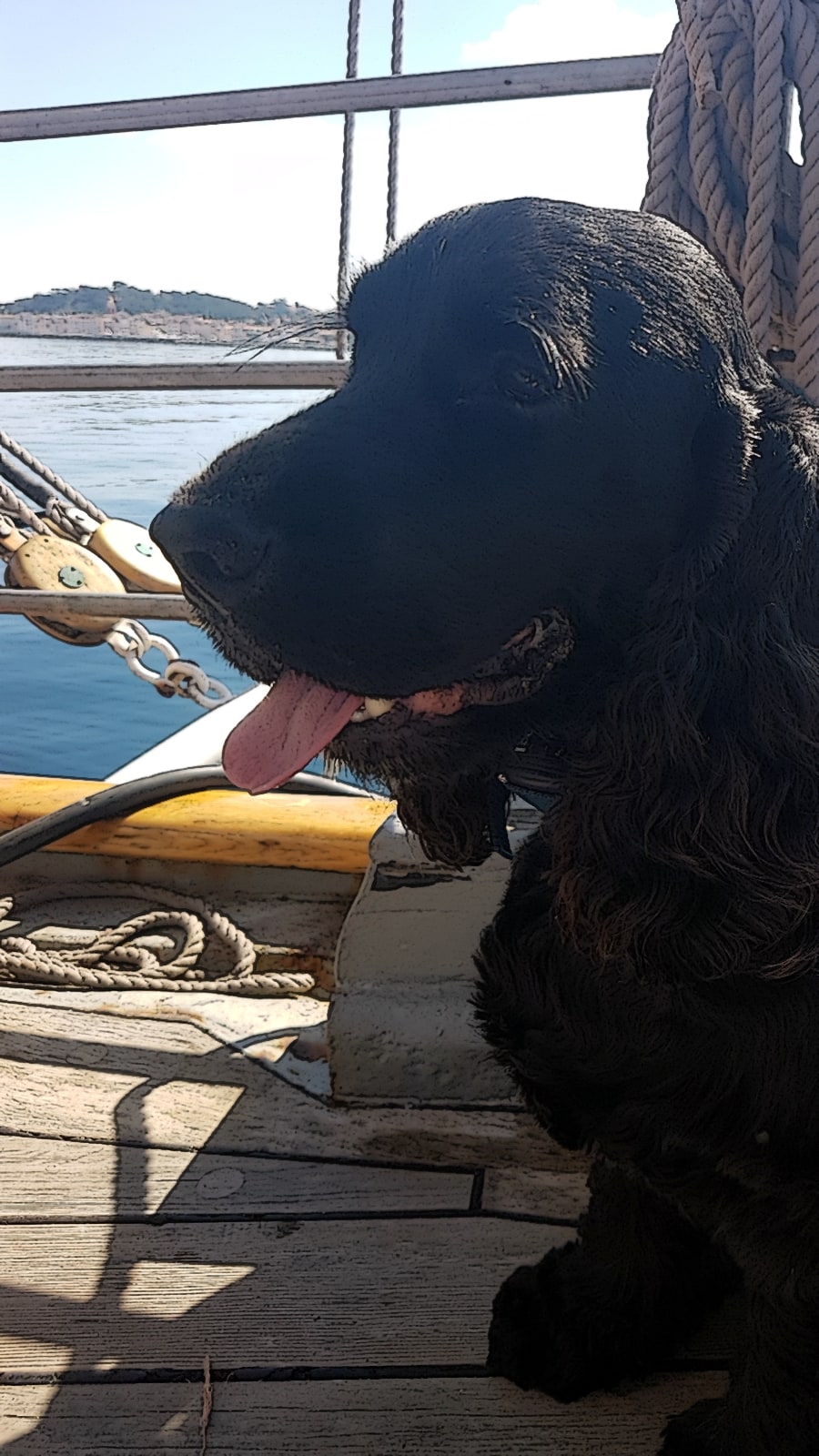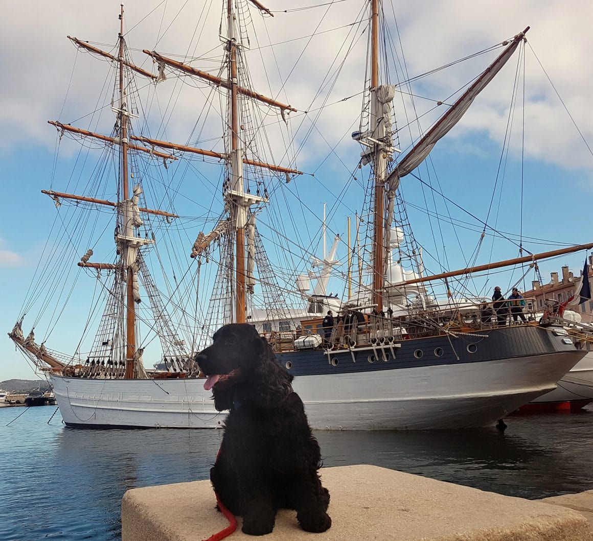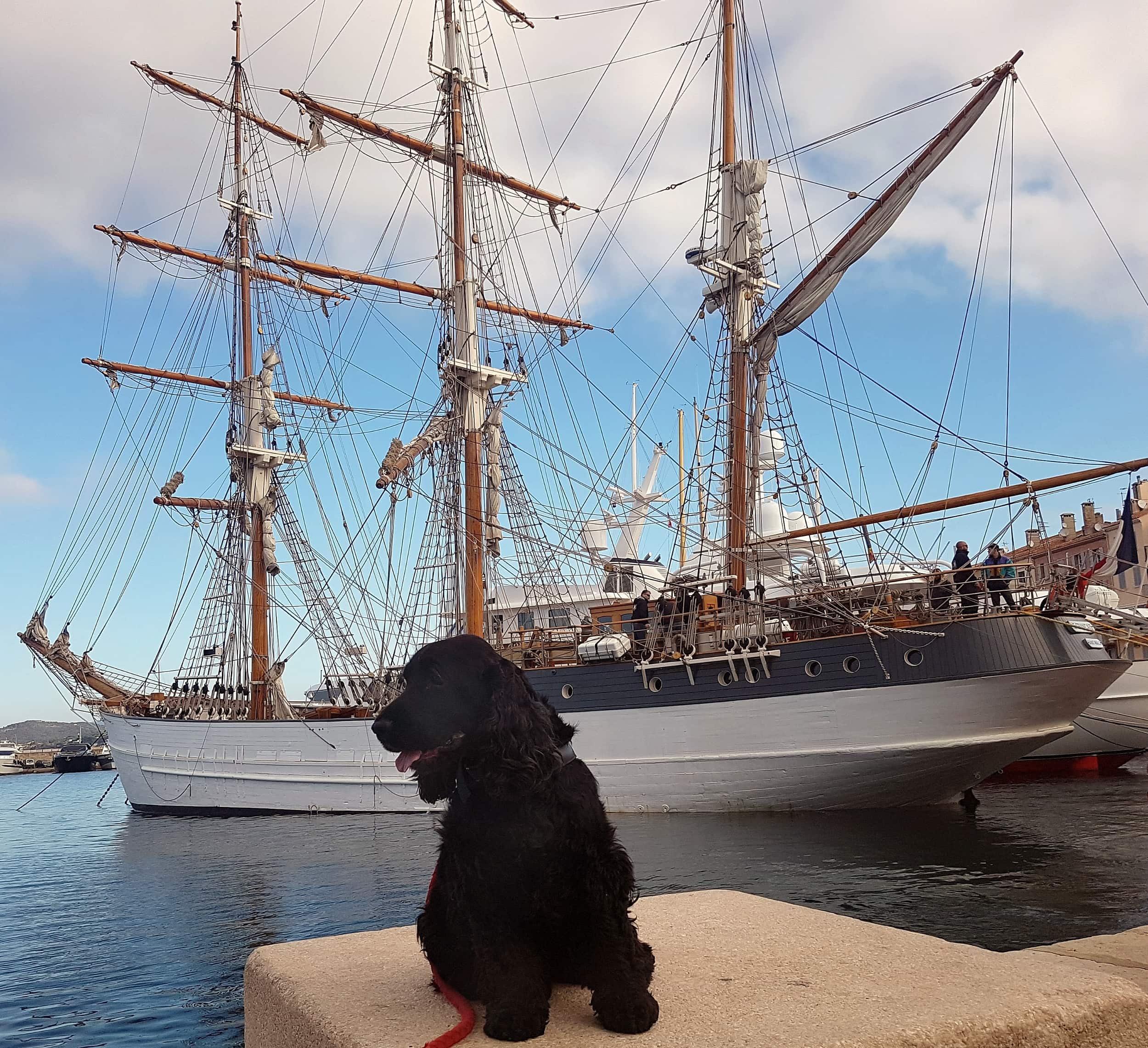 J’ai ainsi vécu avec mon Blacky (devenu le Cocker fétiche du bord) une expérience de navigation inédite où le capitaine Benjamin Hardouin et Lionel Péan, vainqueur de nombreuses courses de voiles et citoyen d’honneur de St-Malo, m’ont dévoilé le navire et conté son histoire, ainsi que les détails du programme de navigation et les manœuvres à suivre… tout cela sous le regard bienveillant de l’équipage !