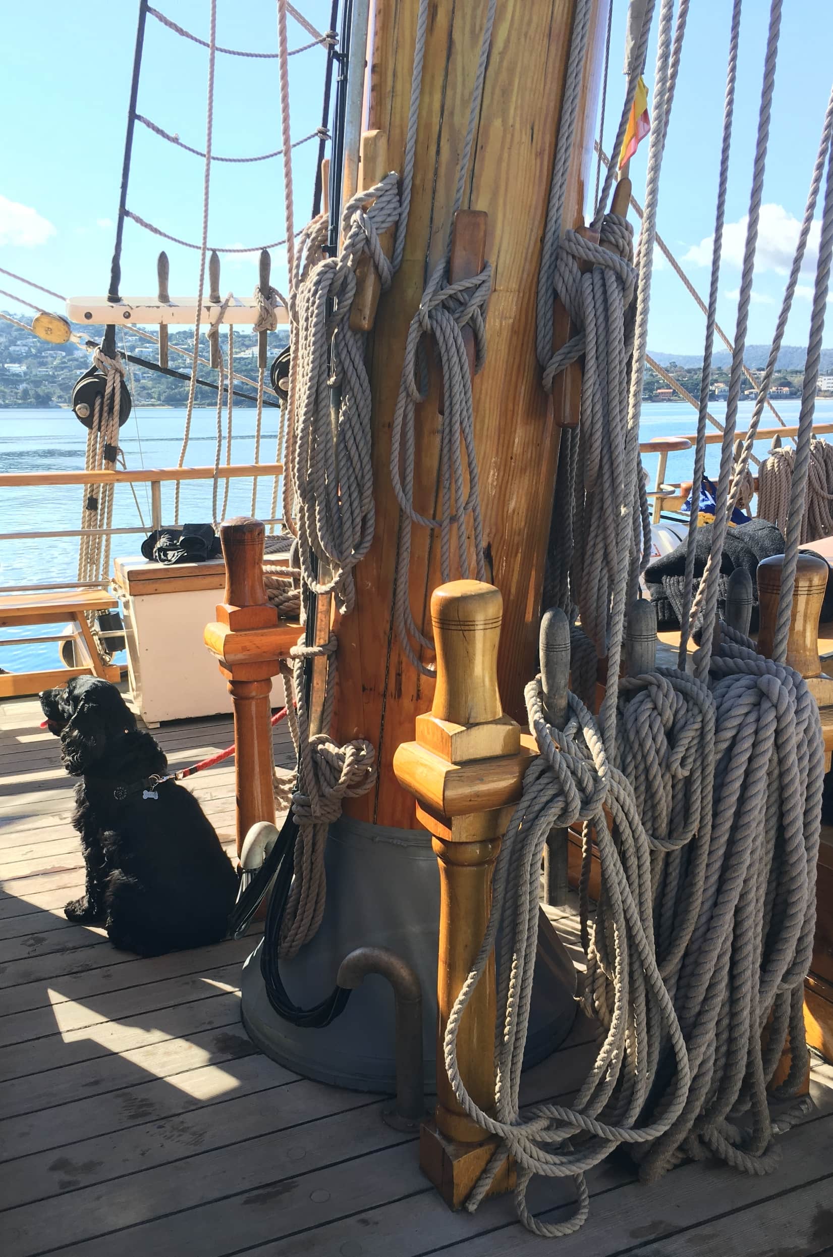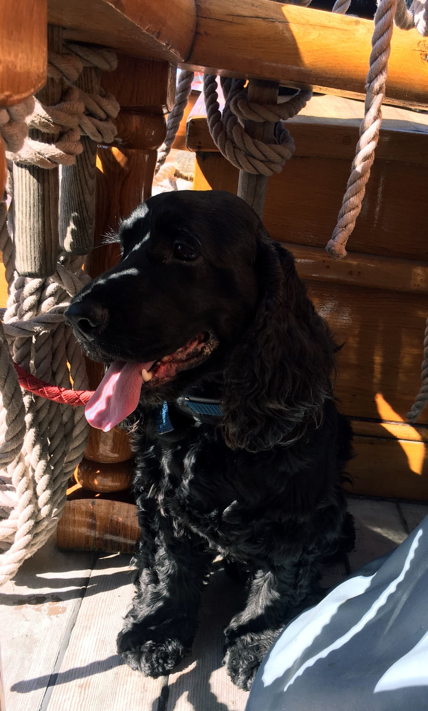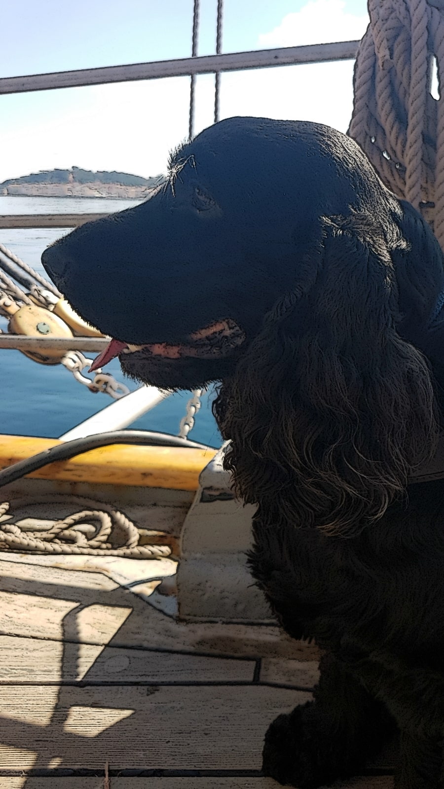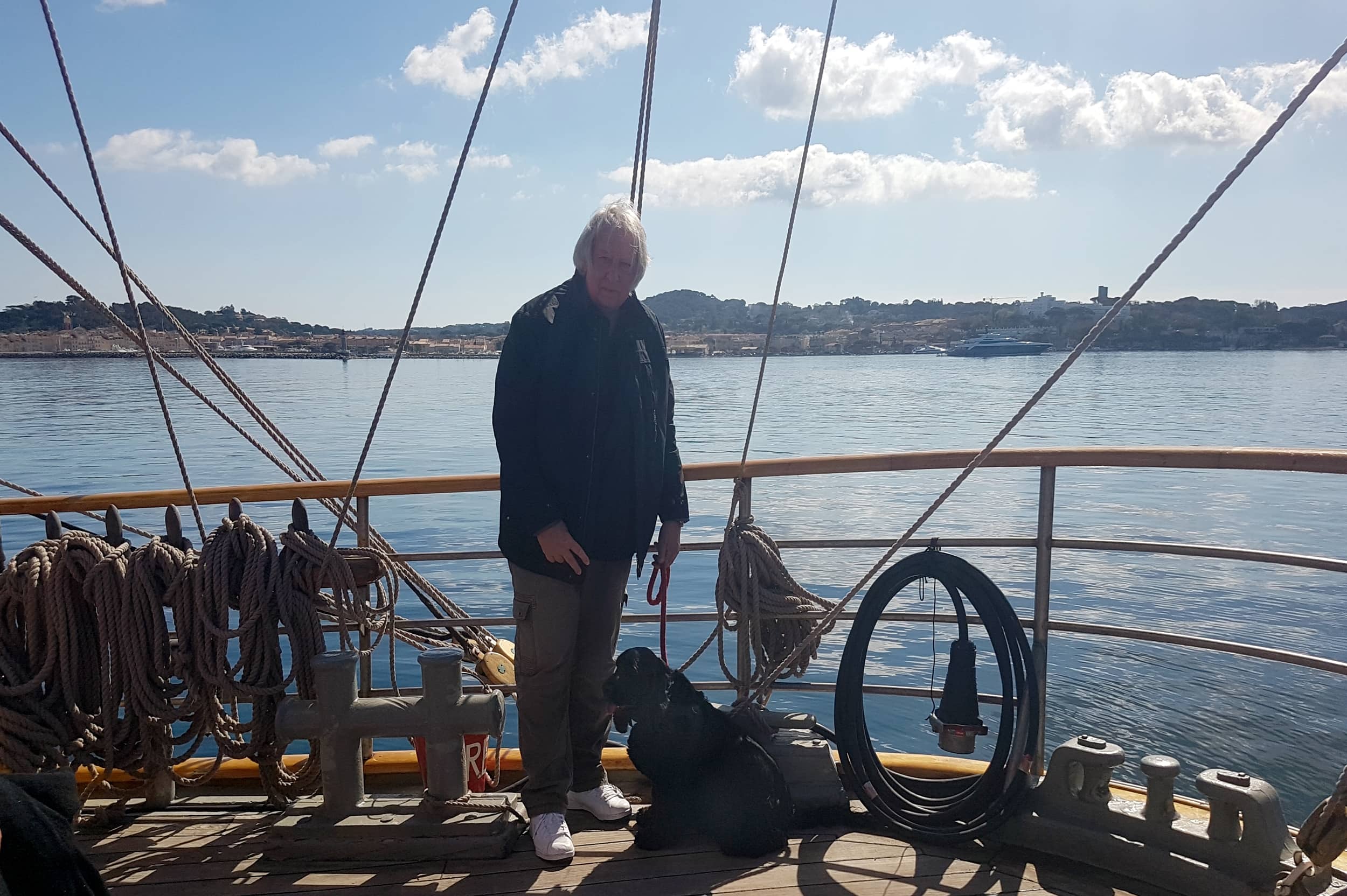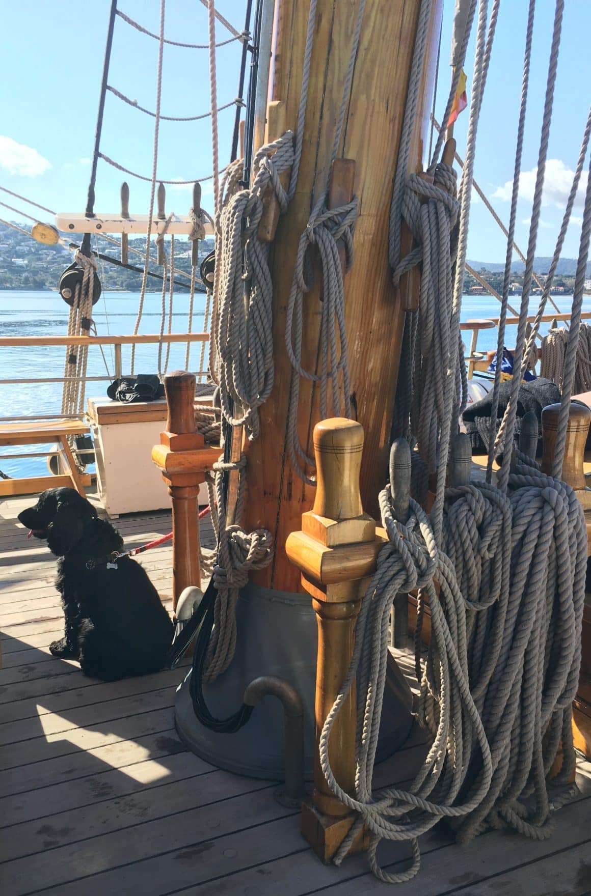 J’ai ainsi vécu avec mon Blacky (devenu le Cocker fétiche du bord) une expérience de navigation inédite où le capitaine Benjamin Hardouin et Lionel Péan, vainqueur de nombreuses courses de voiles et citoyen d’honneur de St-Malo, m’ont dévoilé le navire et conté son histoire, ainsi que les détails du programme de navigation et les manœuvres à suivre… tout cela sous le regard bienveillant de l’équipage !