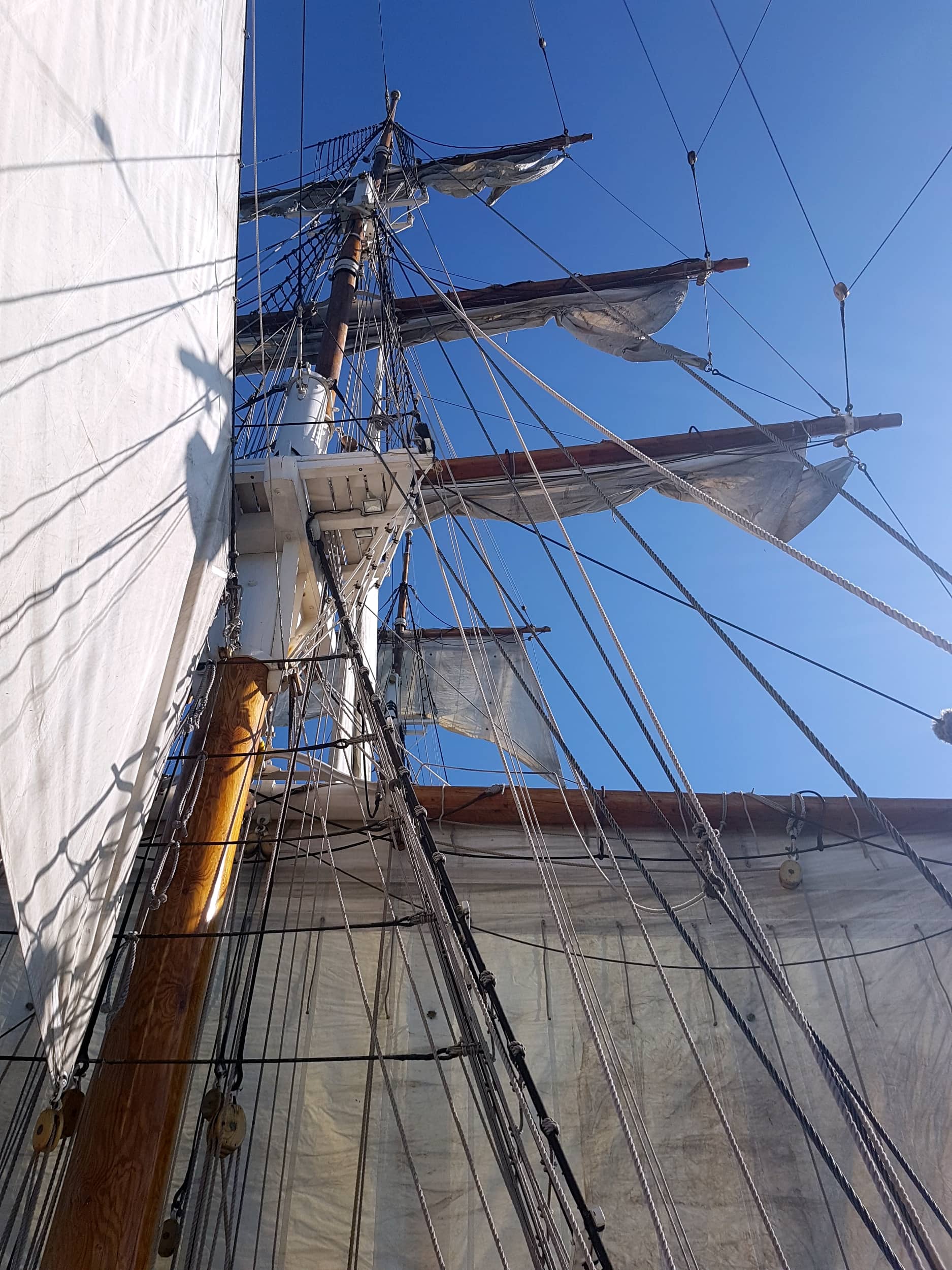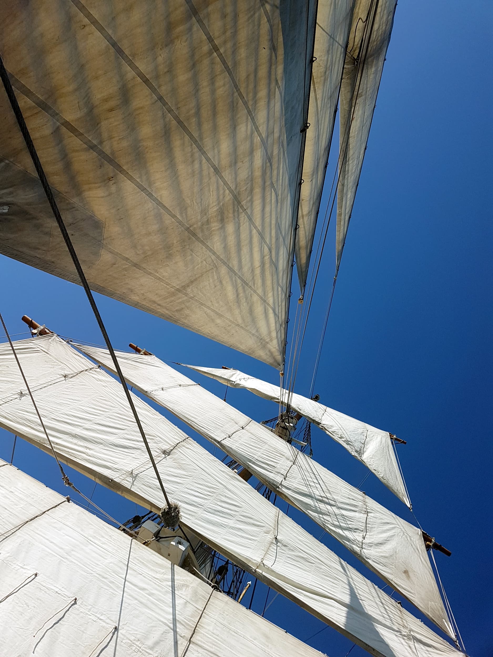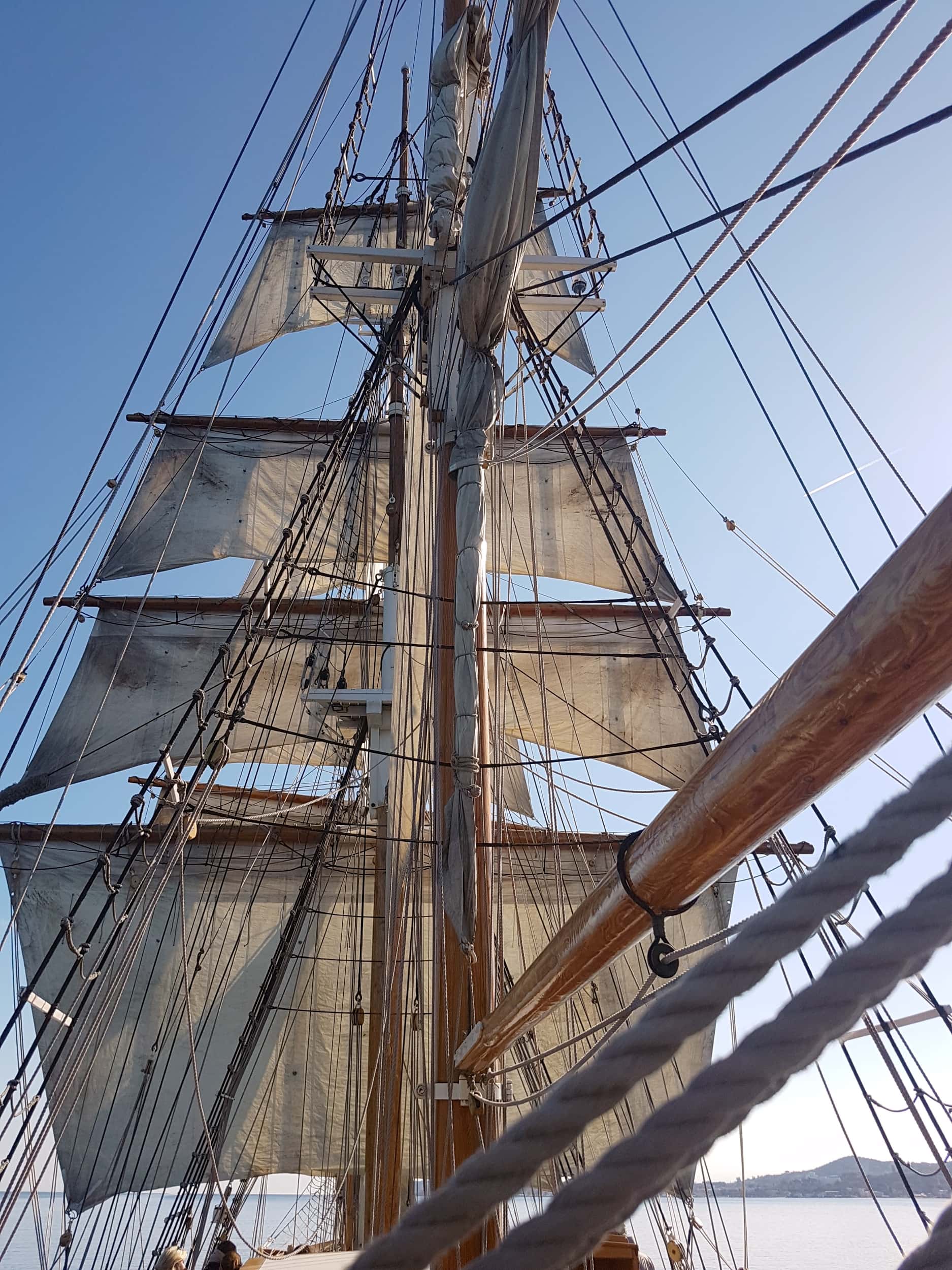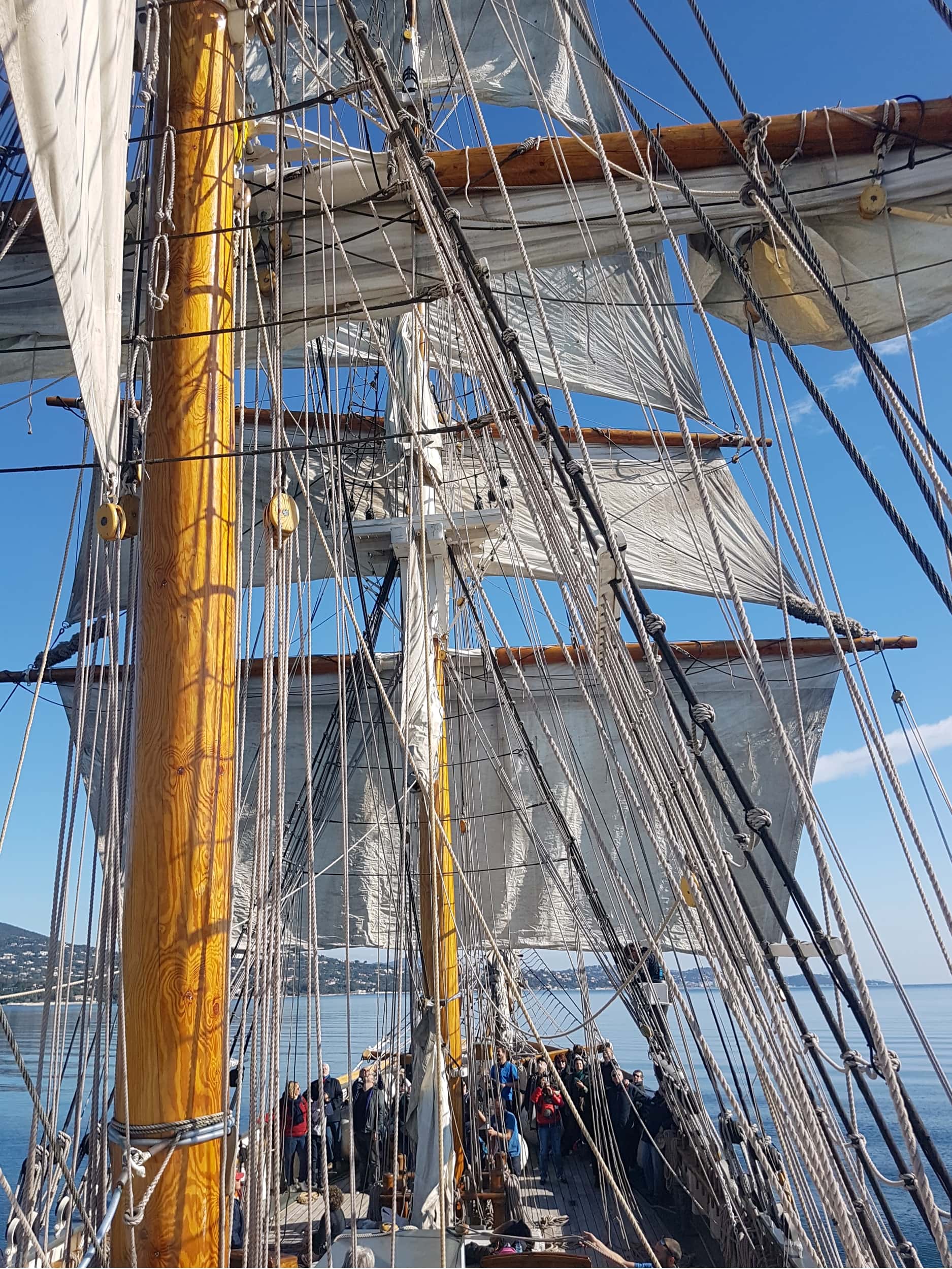 J’ai donc appris à reconnaître les 17 voiles, à hisser, à tirer sur les bouts, à manœuvrer le gréement, à gouverner à la barre… découvrir la navigation à bord restera une rare opportunité qui m’a fait découvrir la vie des marins, dans un cadre sécurisé, convivial et fédérateur, j’ai toutefois décliné l’invitation à grimper aux huniers pour scruter l’horizon et aider à carguer les voiles.
