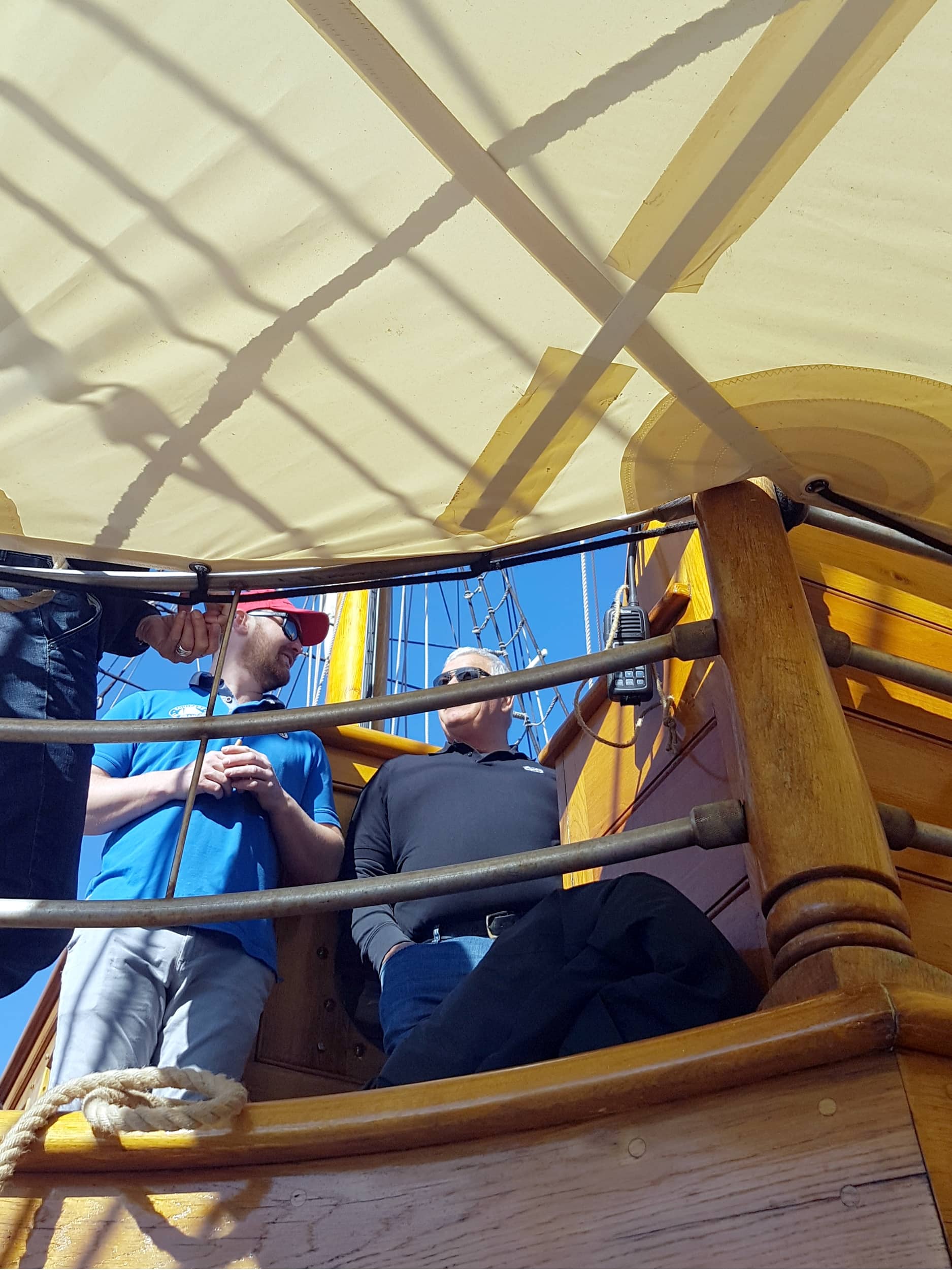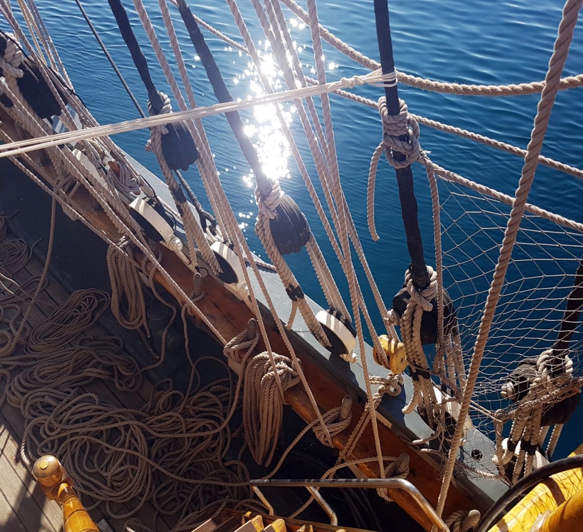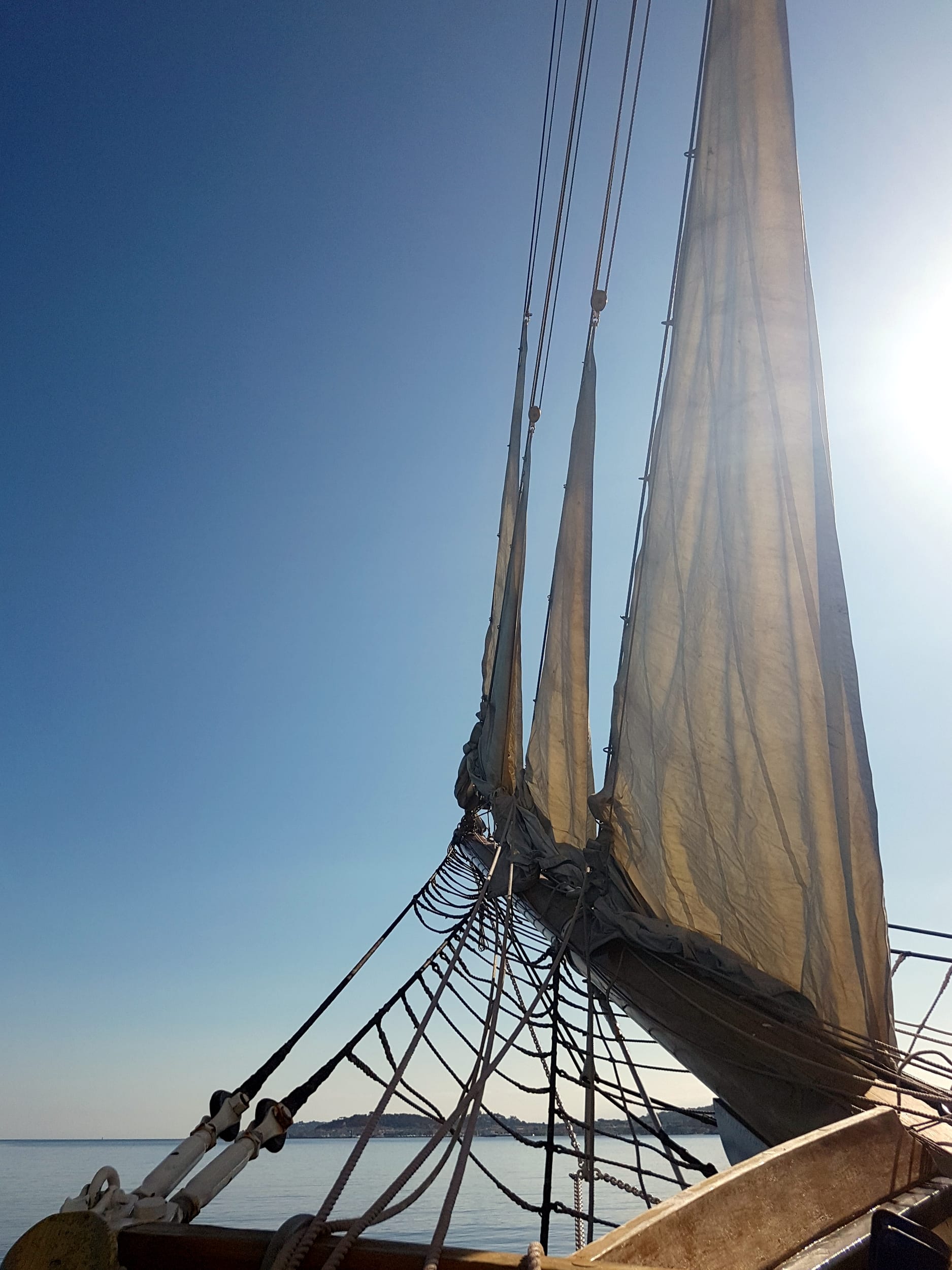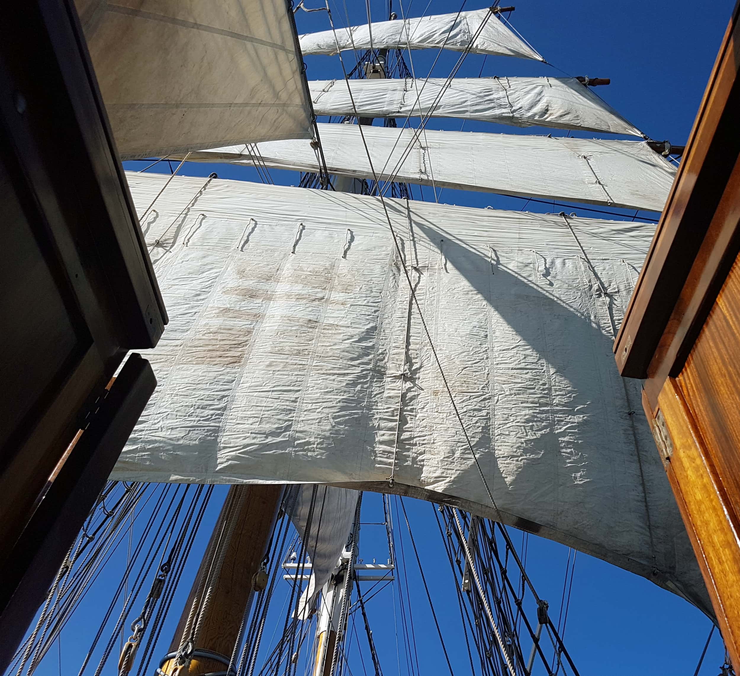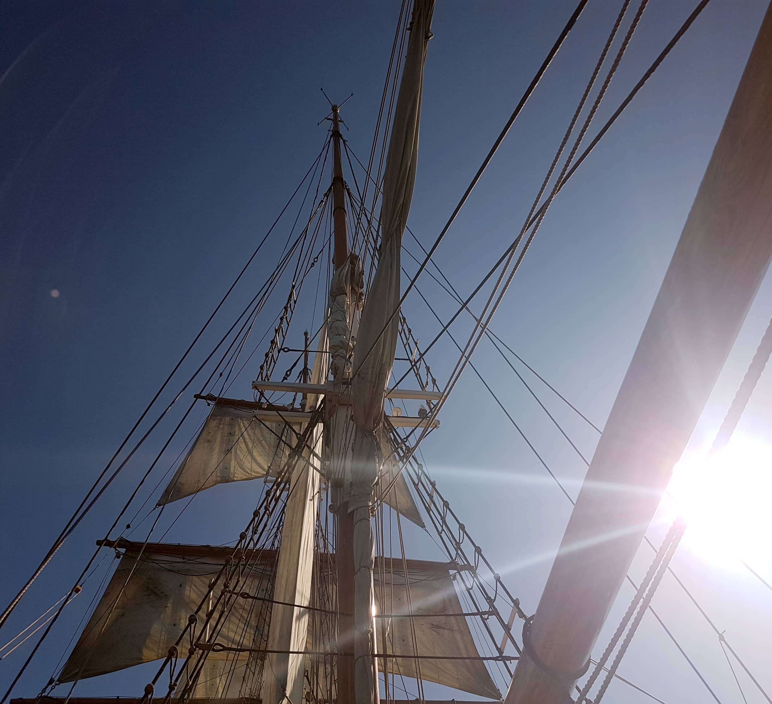 J’ai donc appris à reconnaître les 17 voiles, à hisser, à tirer sur les bouts, à manœuvrer le gréement, à gouverner à la barre… découvrir la navigation à bord restera une rare opportunité qui m’a fait découvrir la vie des marins, dans un cadre sécurisé, convivial et fédérateur, j’ai toutefois décliné l’invitation à grimper aux huniers pour scruter l’horizon et aider à carguer les voiles.