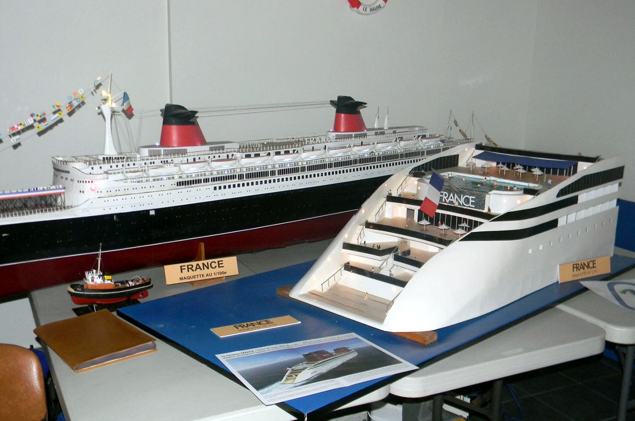 Peu à peu, le nouveau France prend forme sur le papier : conçu pour accueillir 800 passagers, il est long de 260 mètres, doté de huit ponts, de larges cabines de 36 m2 minimum prolongées d’un balcon, quelques suites de 63 m2 (et une immense de 400 m2, à 15.000 dollars la journée).
