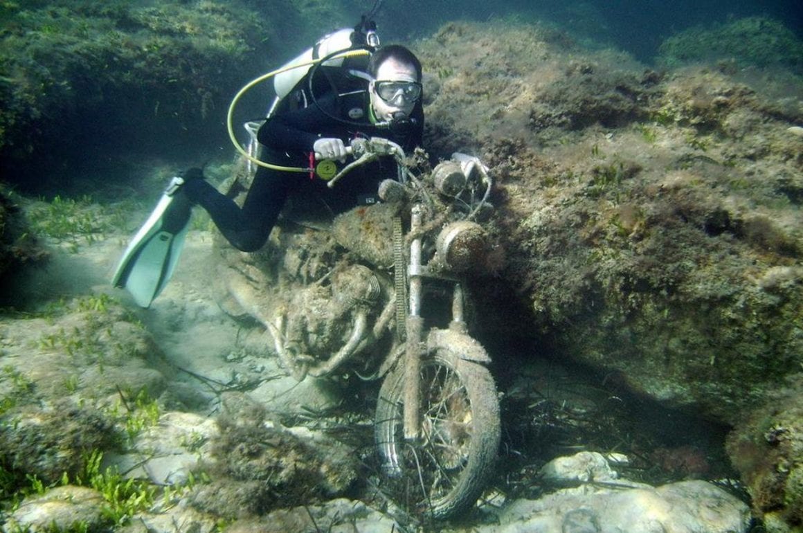 Ma force vient de ce qu’on ne peut pas m’acheter (sinon bientôt dans les bonnes librairies si je me décide à republier Chromes&Flammes)…, quoi qu’encours-je…, je poursuis mon œuvre d’information… et cette fois, je n’hésite pas à vous annoncer l’impensable nouvelle : Outre des méduses urticantes et des raies venimeuses, le Golfe de Saint-Tropez contient des épaves inédites, vélos, motos, autos, avions et bateaux…, une affaire à suivre…, suivons-là !