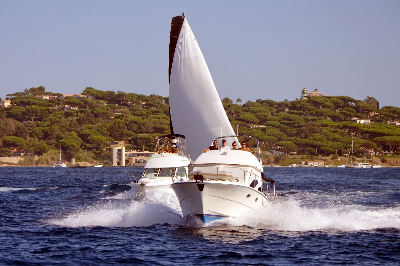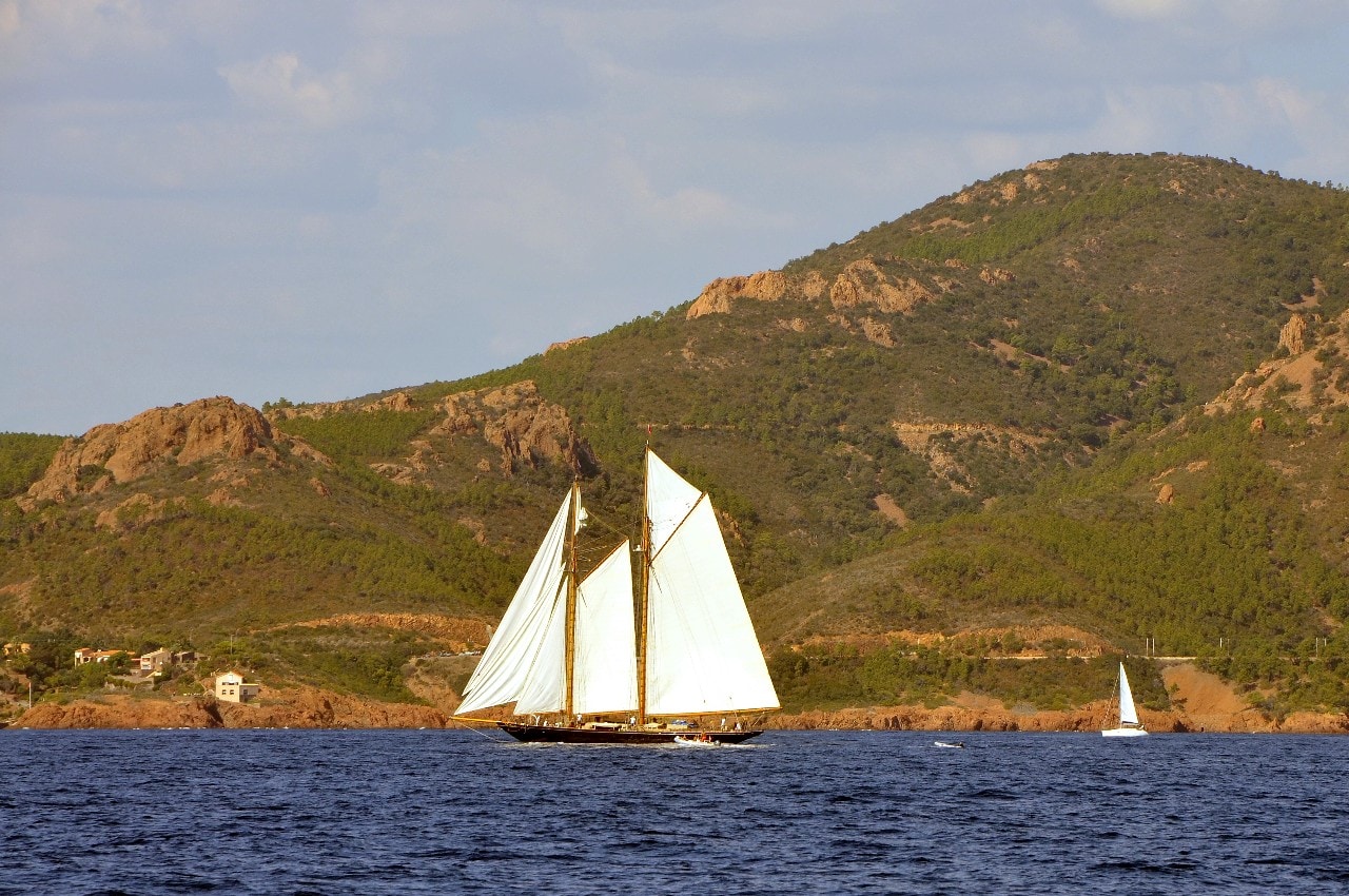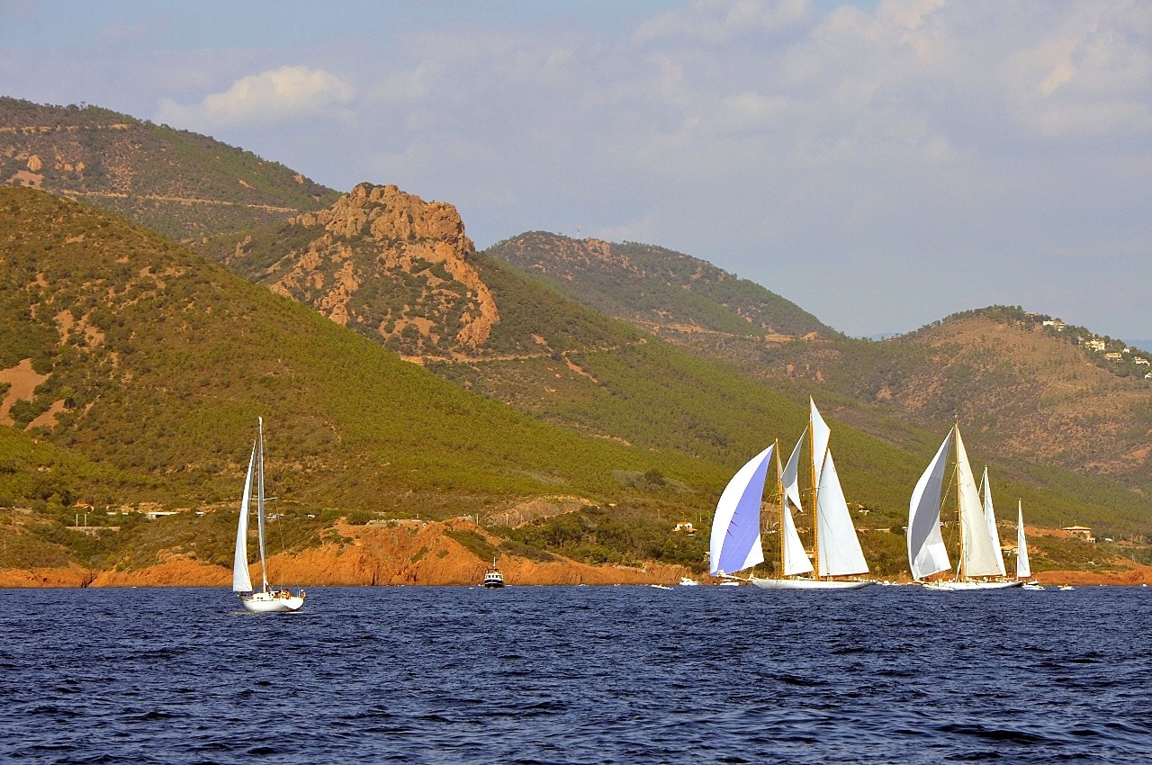 Partie peu après 12 heures, la flotte a profité d’un léger flux d’Est, d’environ 8 noeuds, pour glisser au portant vers Dramont et l’entrée du golfe.