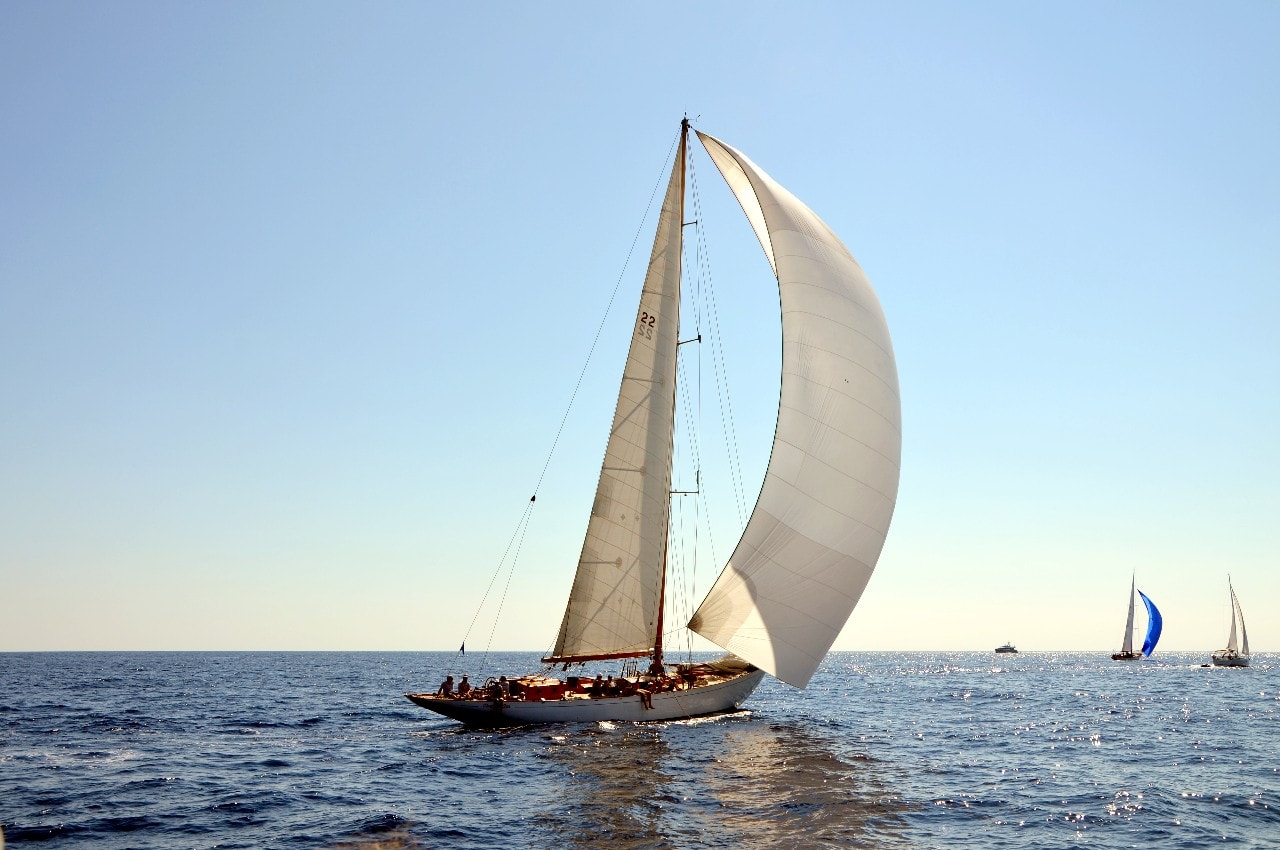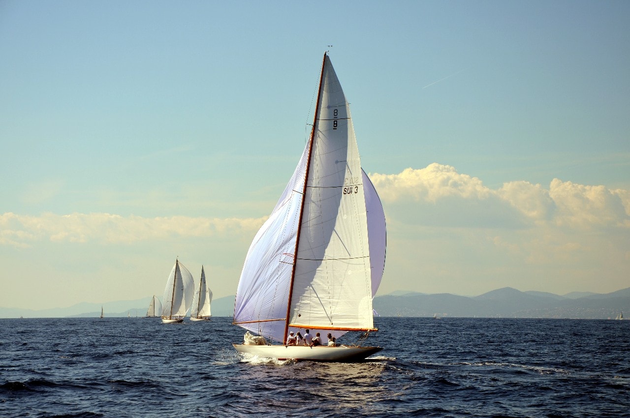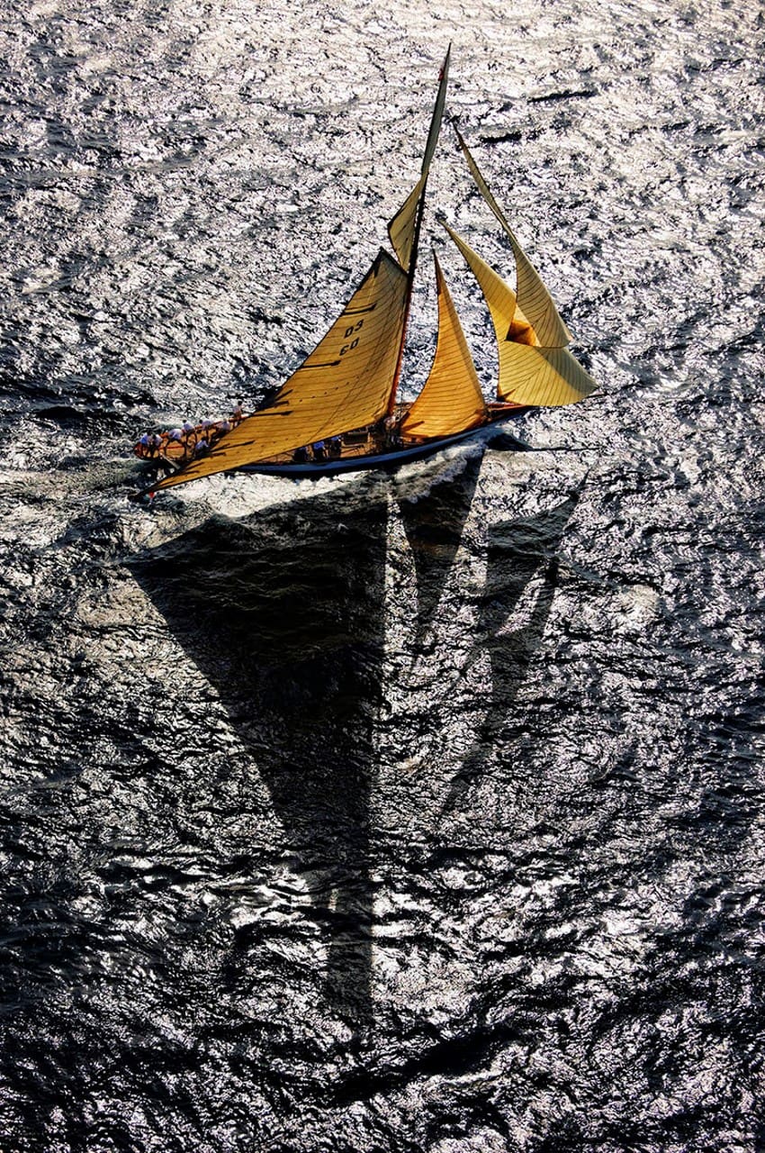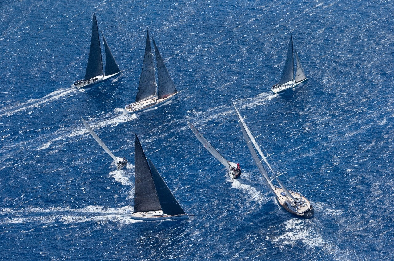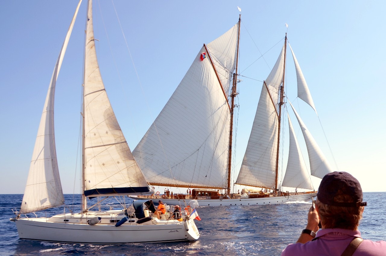 Des voiliers entourés par des dizaines d’autres, points lumineux sous l’éclat du bleu azuré, d’où seul émerge le bruit du vent dans les voiles et de l’écume sur les flancs de la coque.