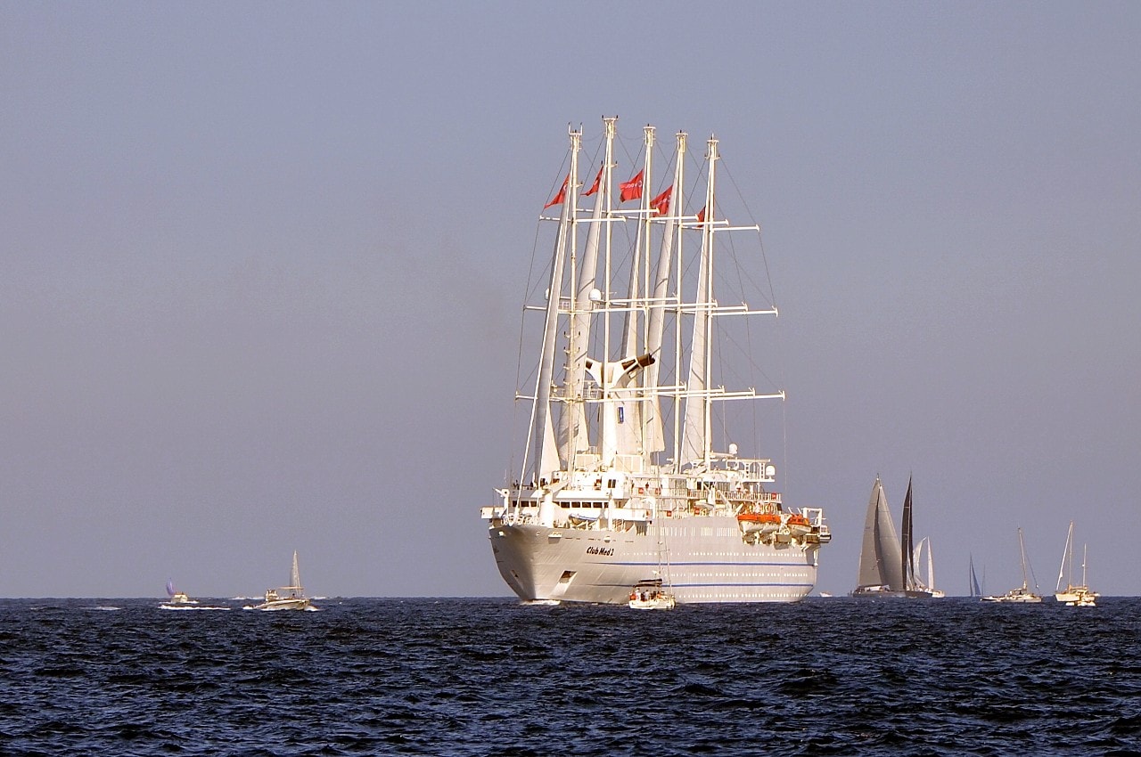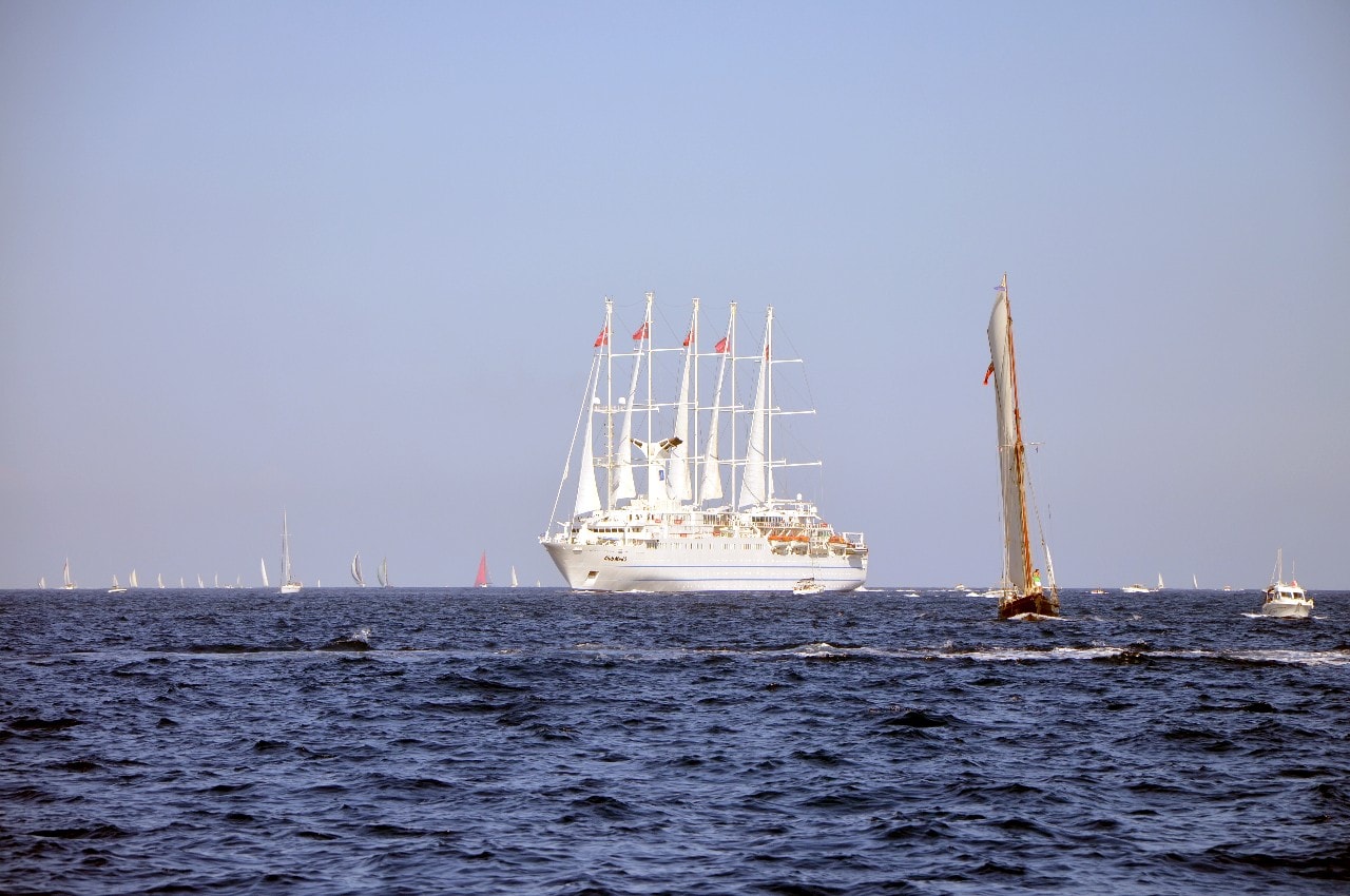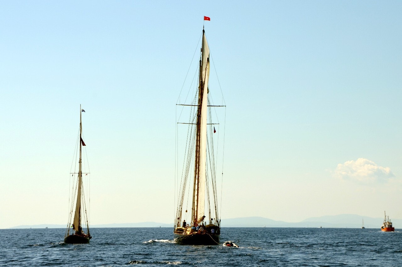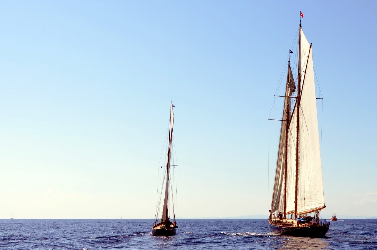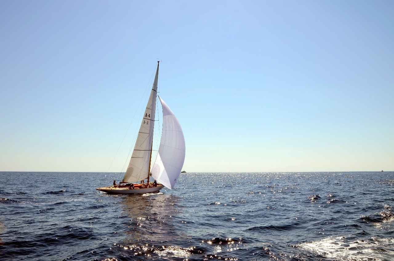 Des voiliers entourés par des dizaines d’autres, points lumineux sous l’éclat du bleu azuré, d’où seul émerge le bruit du vent dans les voiles et de l’écume sur les flancs de la coque.