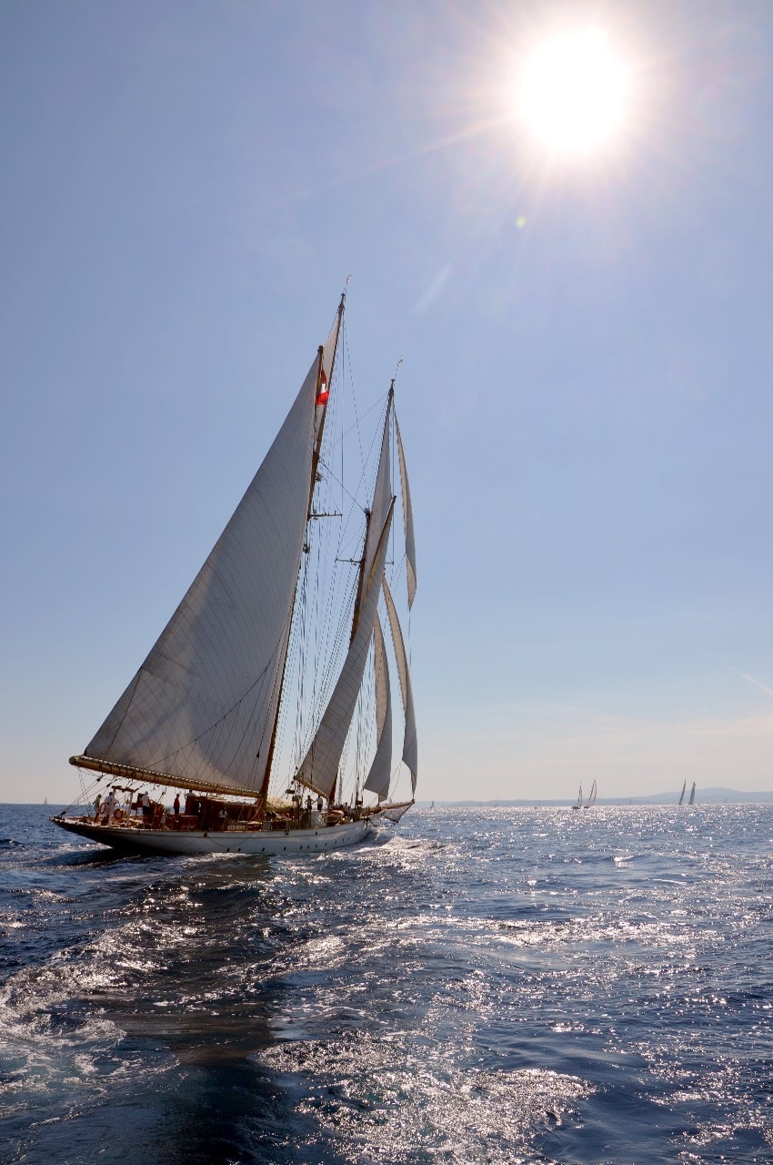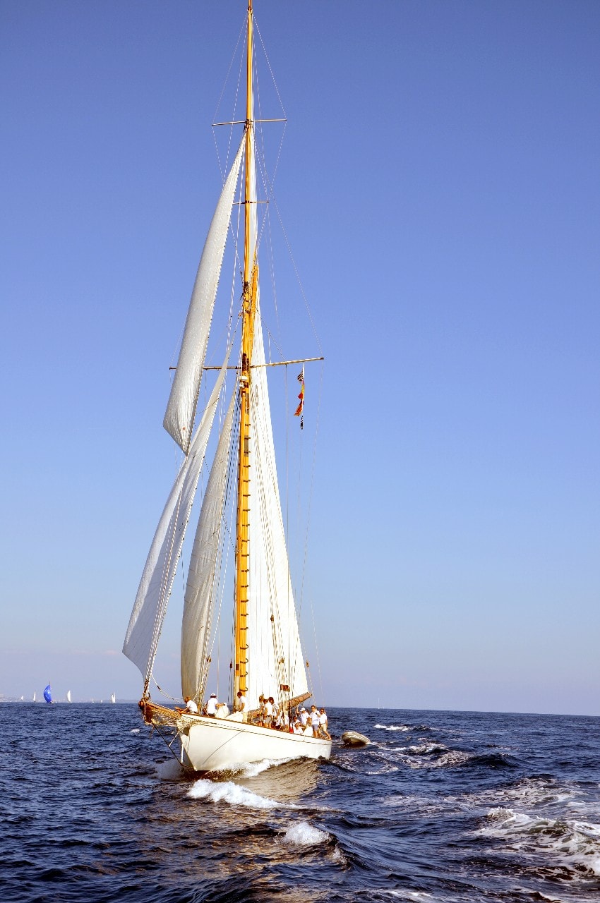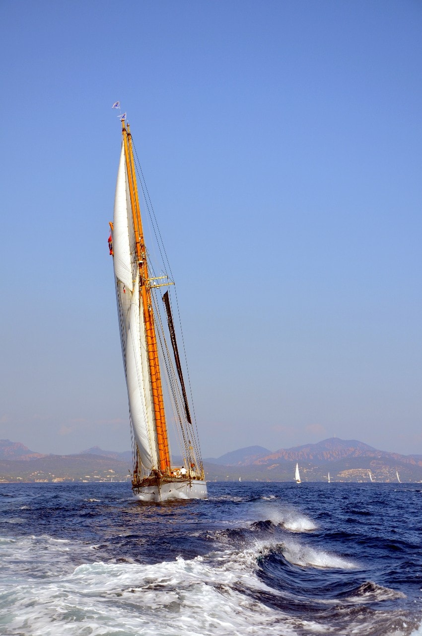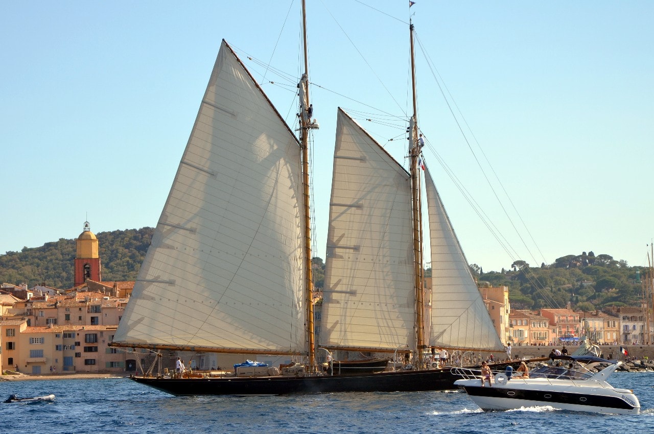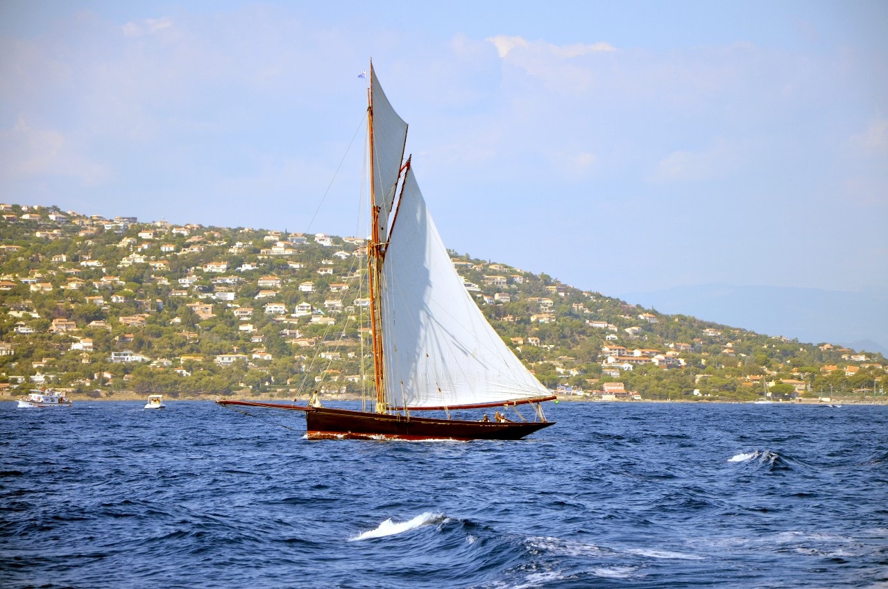 La grande goélette construite en 2009 sur plan Herreshoff n’a laissé à personne le privilège d’entrer en tête des 49 voiliers classiques dans le golfe de Saint-Tropez, en provenance de Cannes.