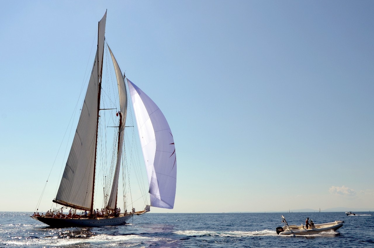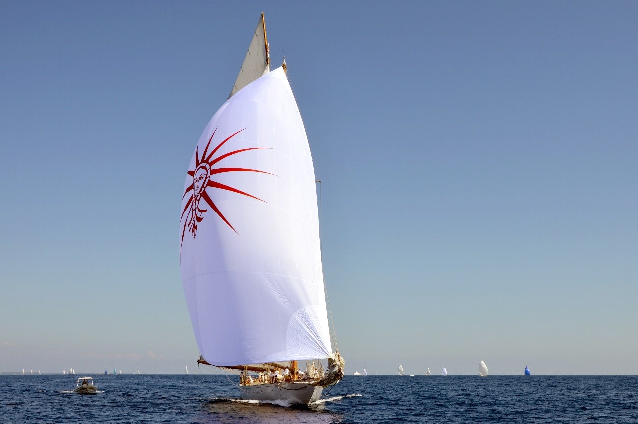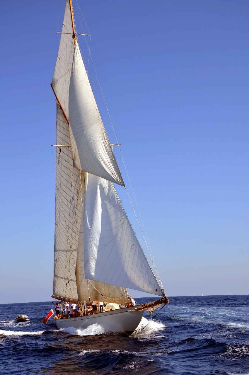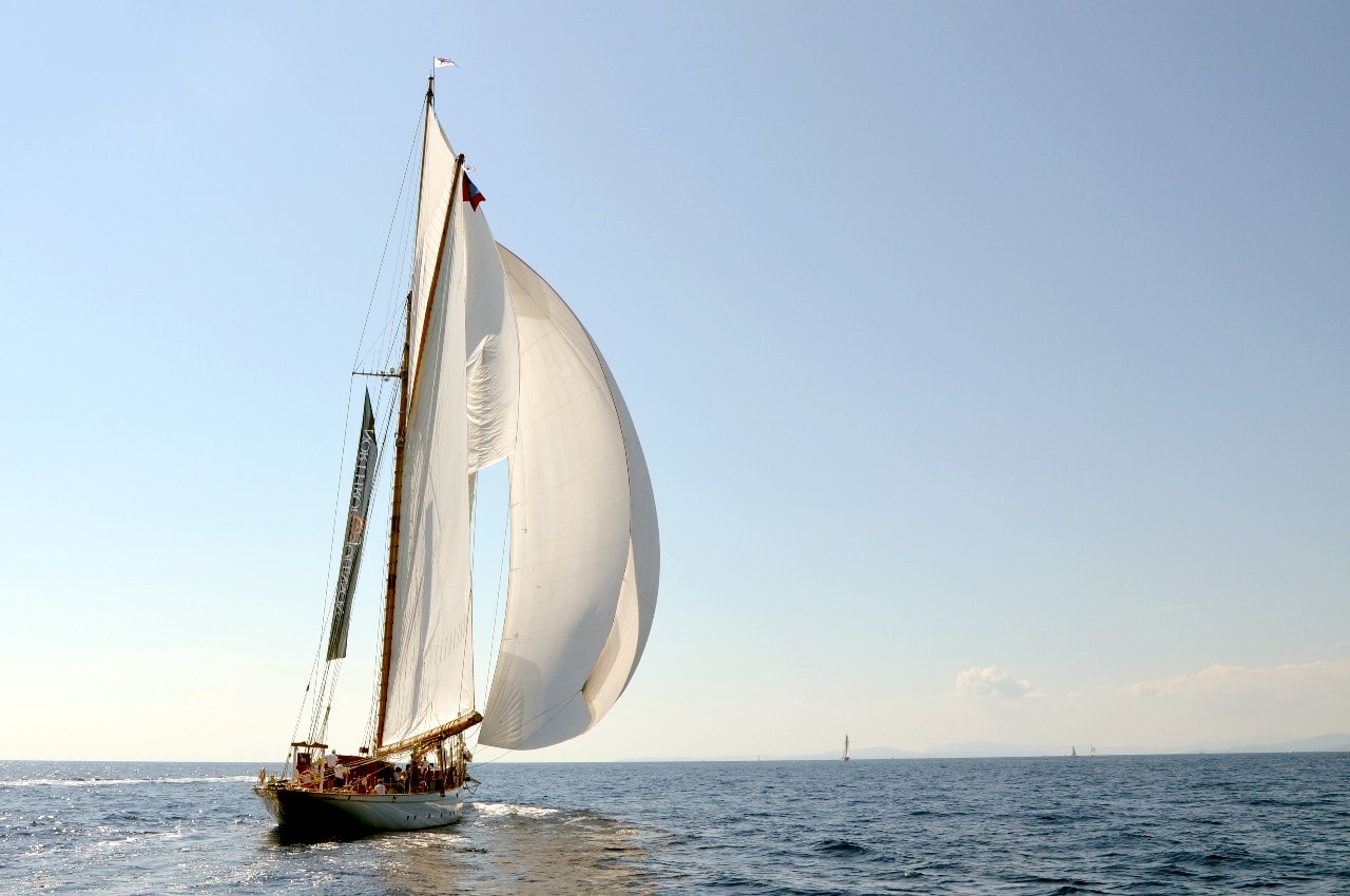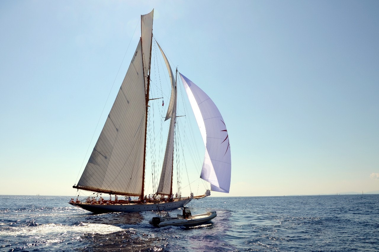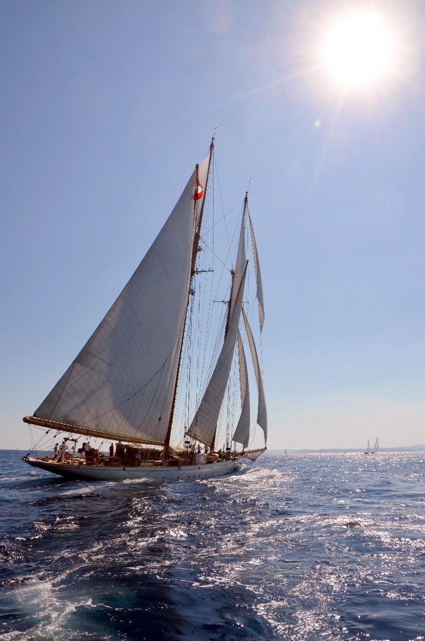La grande goélette construite en 2009 sur plan Herreshoff n’a laissé à personne le privilège d’entrer en tête des 49 voiliers classiques dans le golfe de Saint-Tropez, en provenance de Cannes.