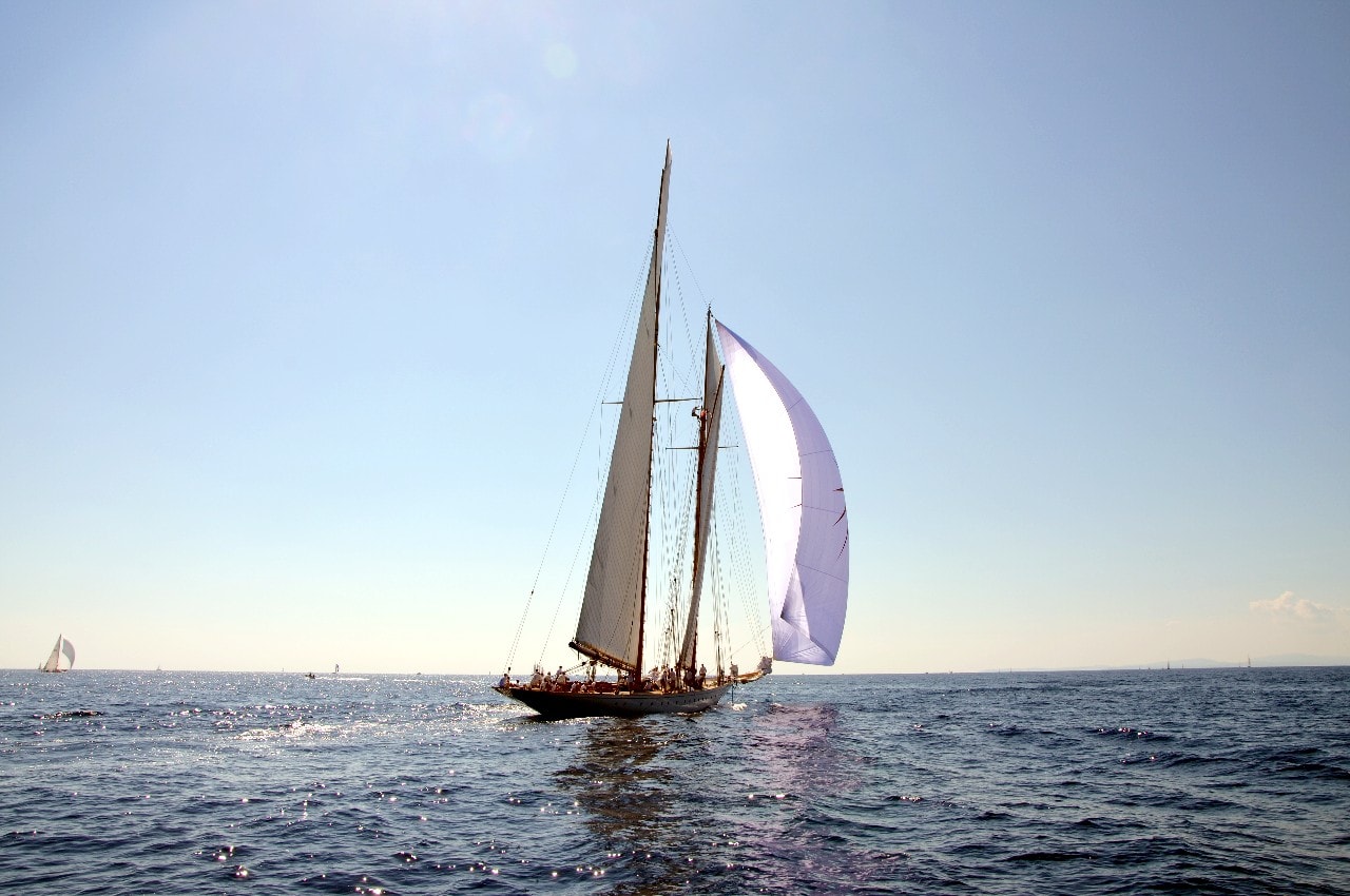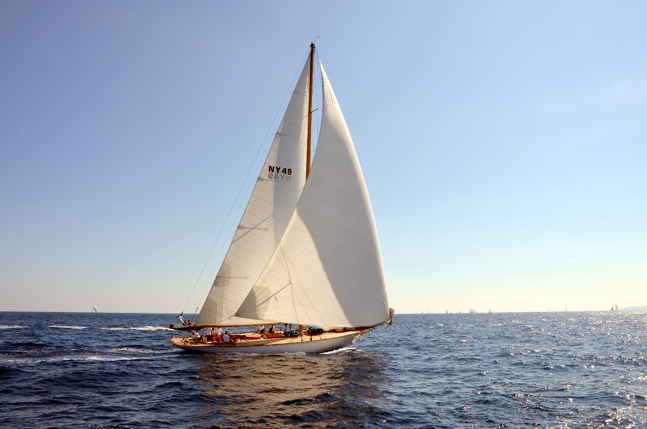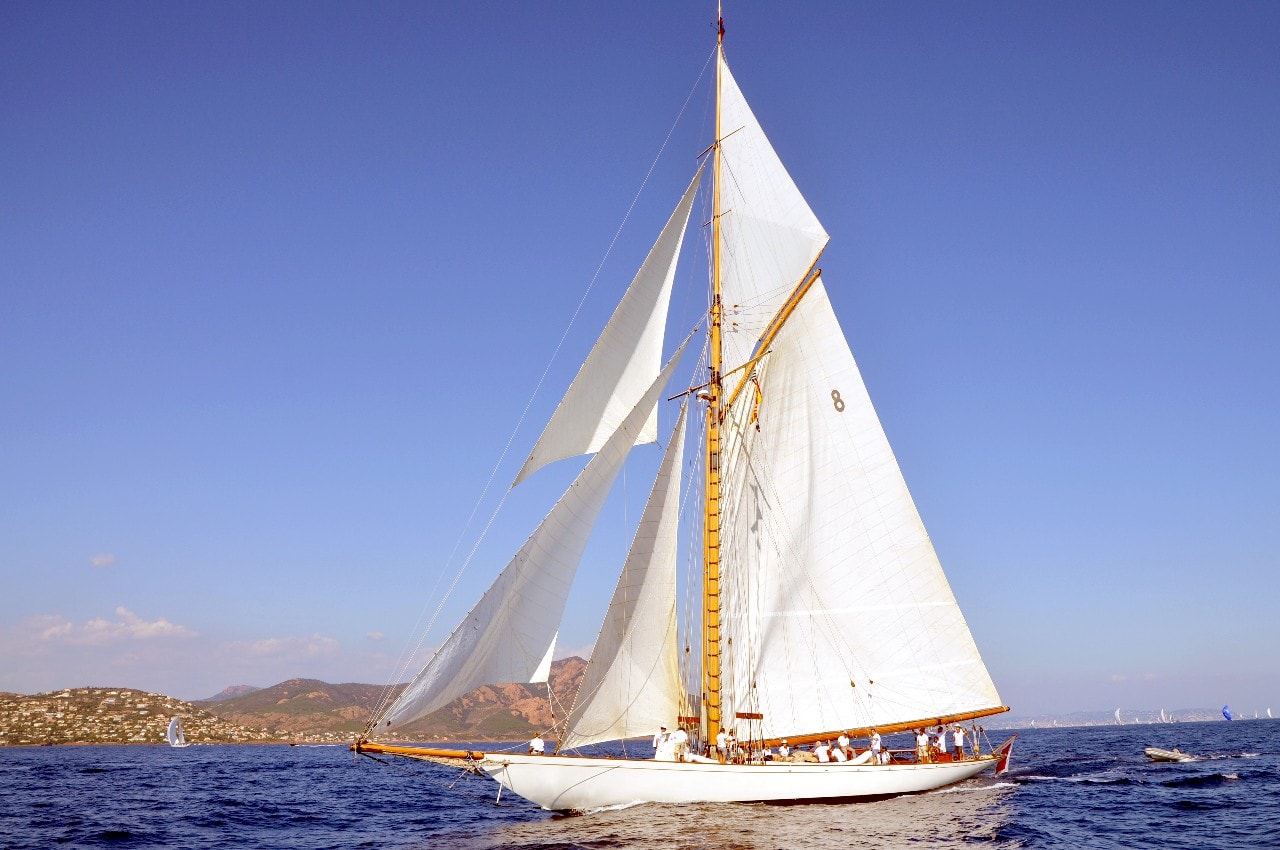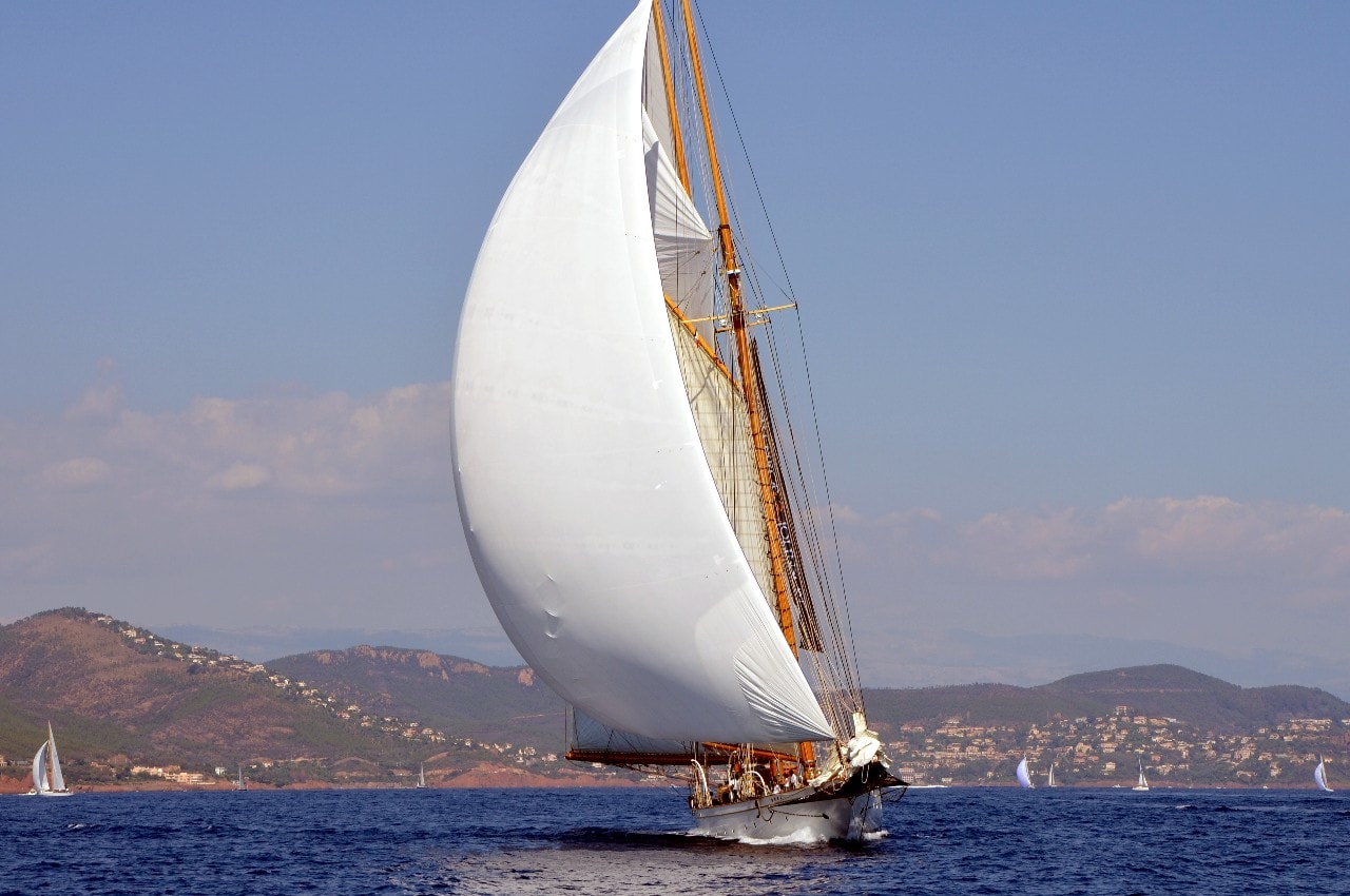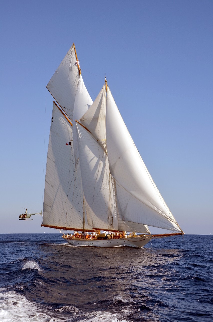 La grande goélette construite en 2009 sur plan Herreshoff n’a laissé à personne le privilège d’entrer en tête des 49 voiliers classiques dans le golfe de Saint-Tropez, en provenance de Cannes.