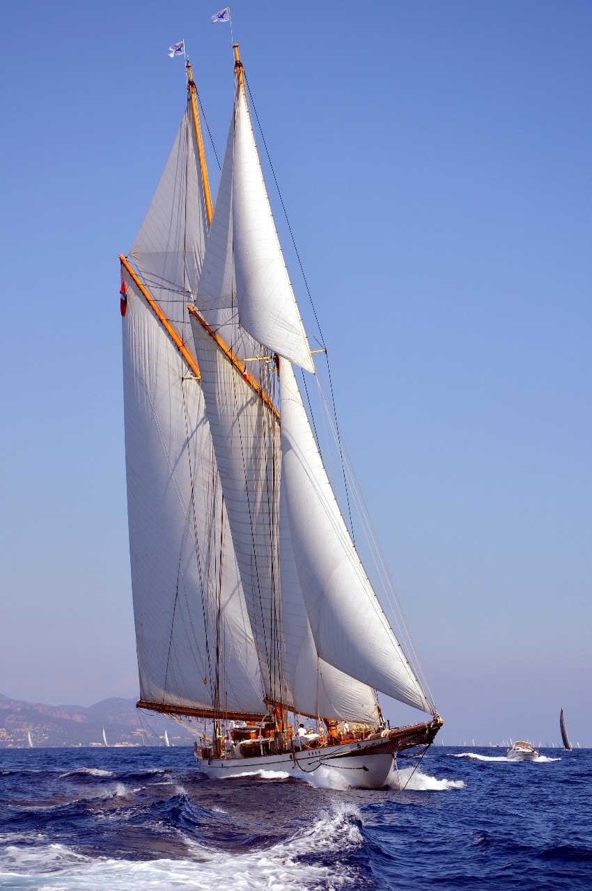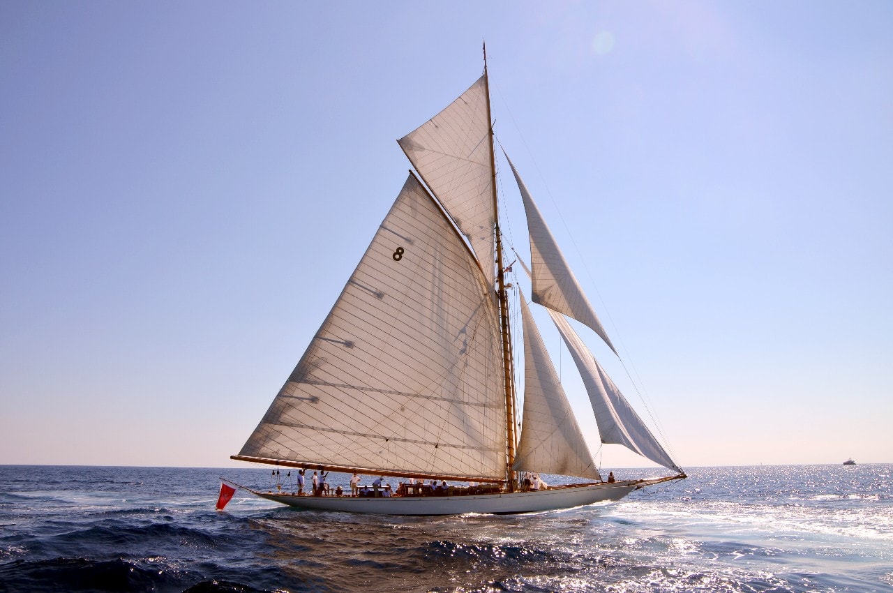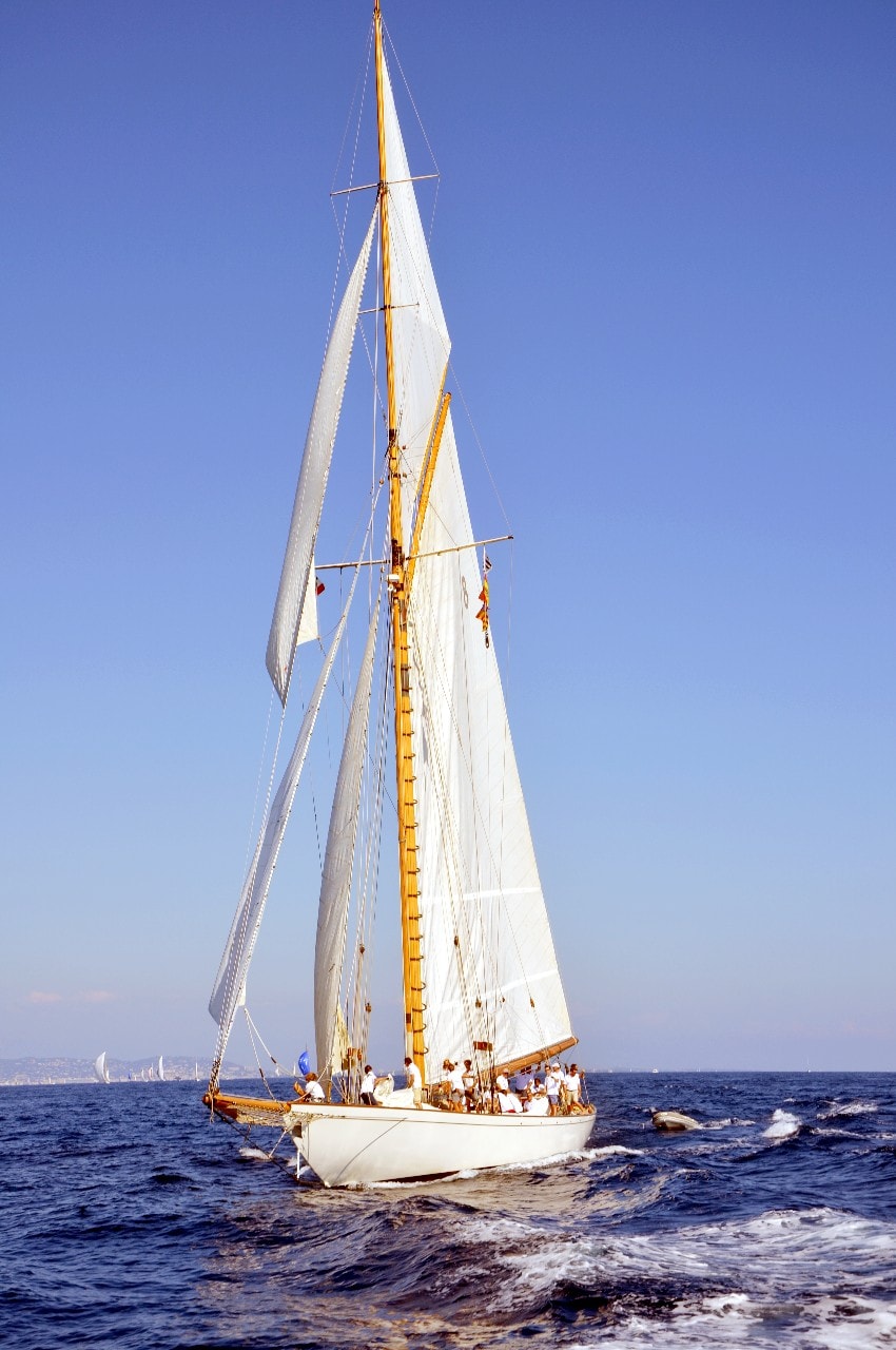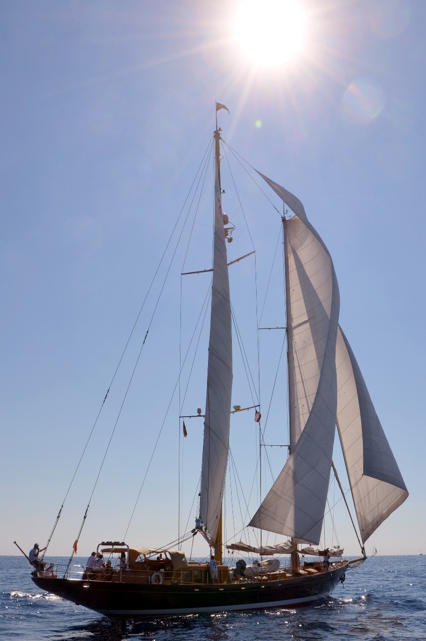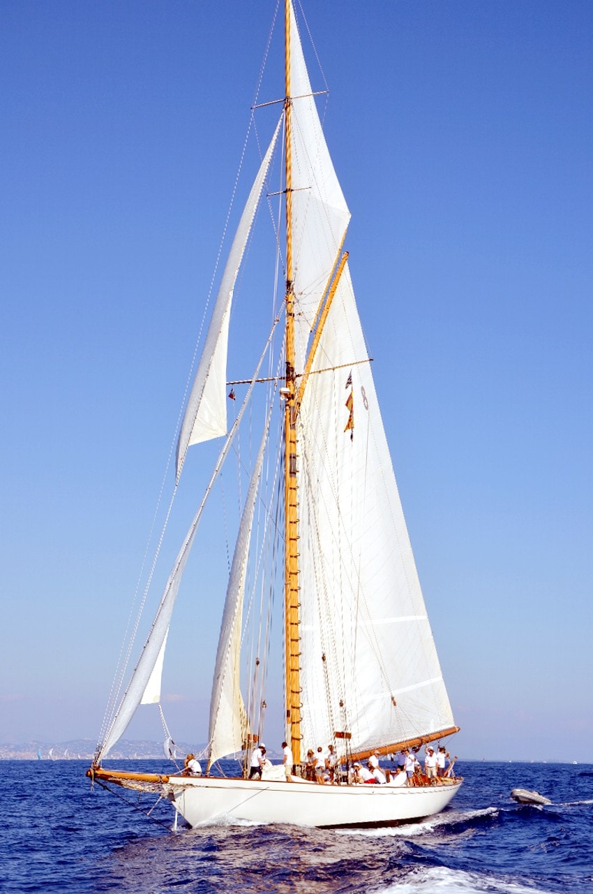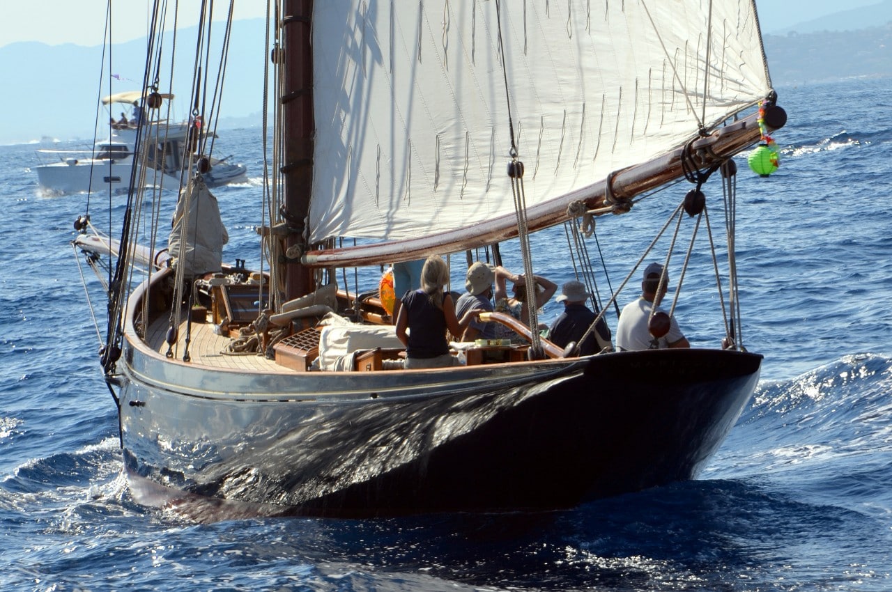 La grande goélette construite en 2009 sur plan Herreshoff n’a laissé à personne le privilège d’entrer en tête des 49 voiliers classiques dans le golfe de Saint-Tropez, en provenance de Cannes.