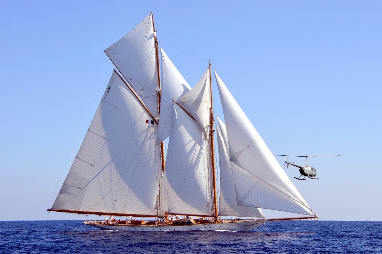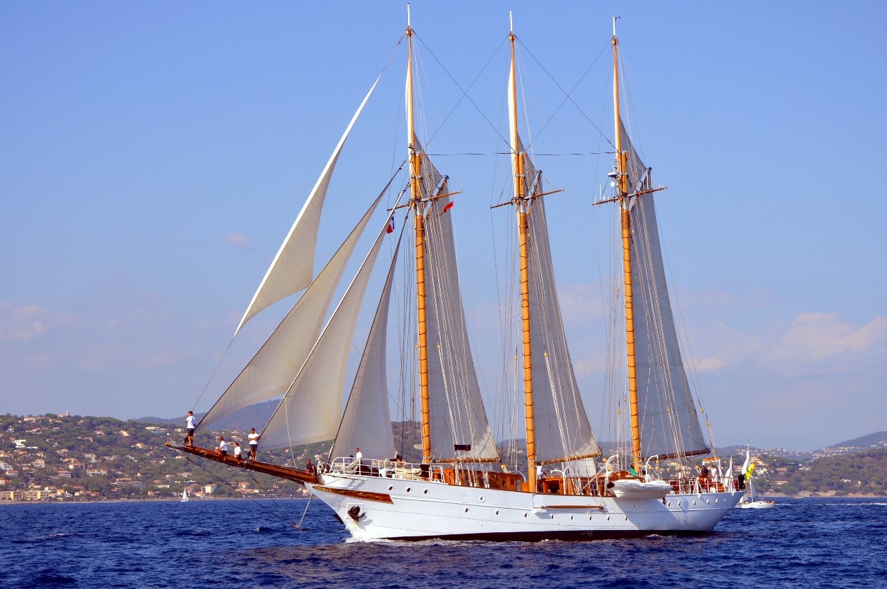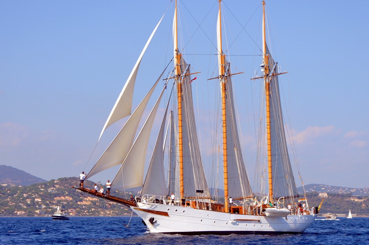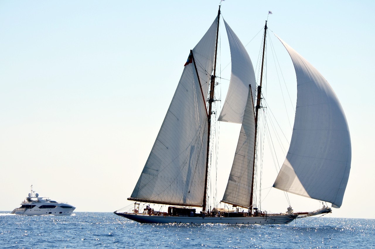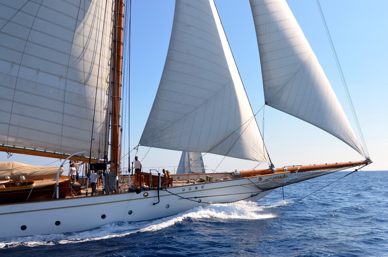 La grande goélette construite en 2009 sur plan Herreshoff n’a laissé à personne le privilège d’entrer en tête des 49 voiliers classiques dans le golfe de Saint-Tropez, en provenance de Cannes.
