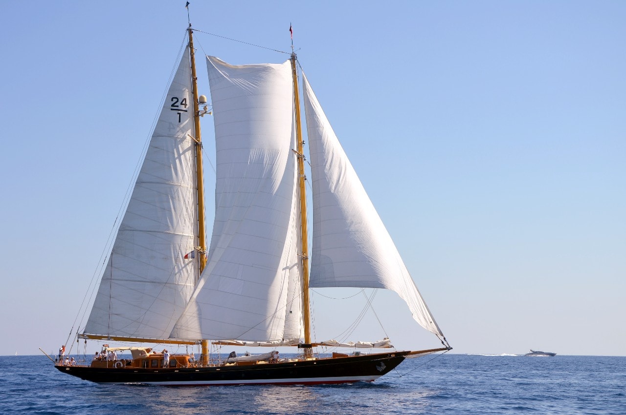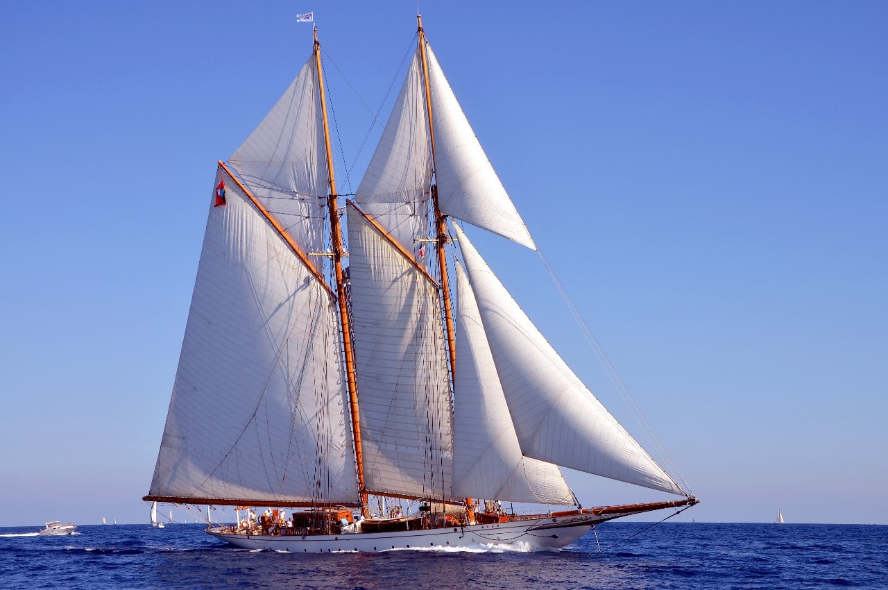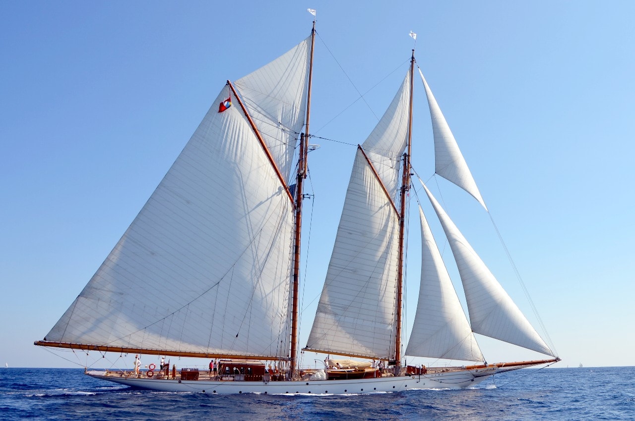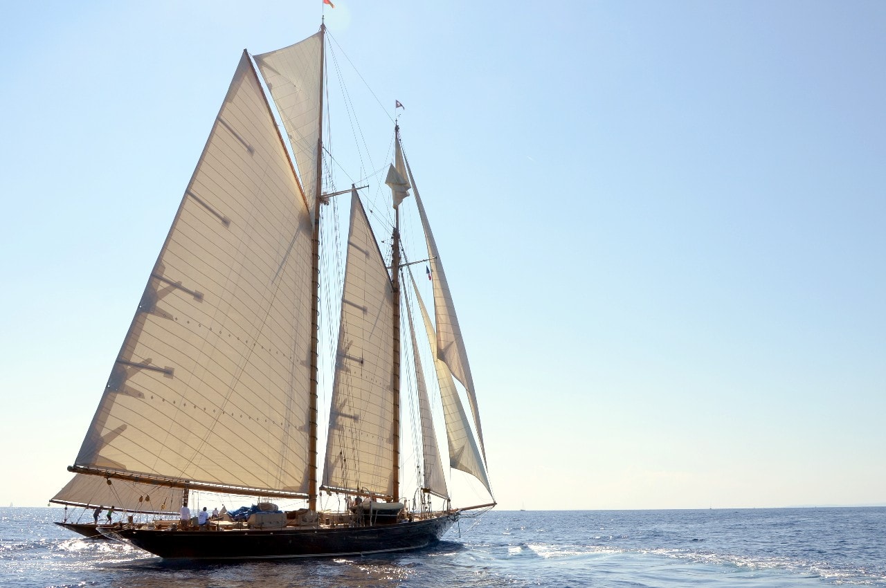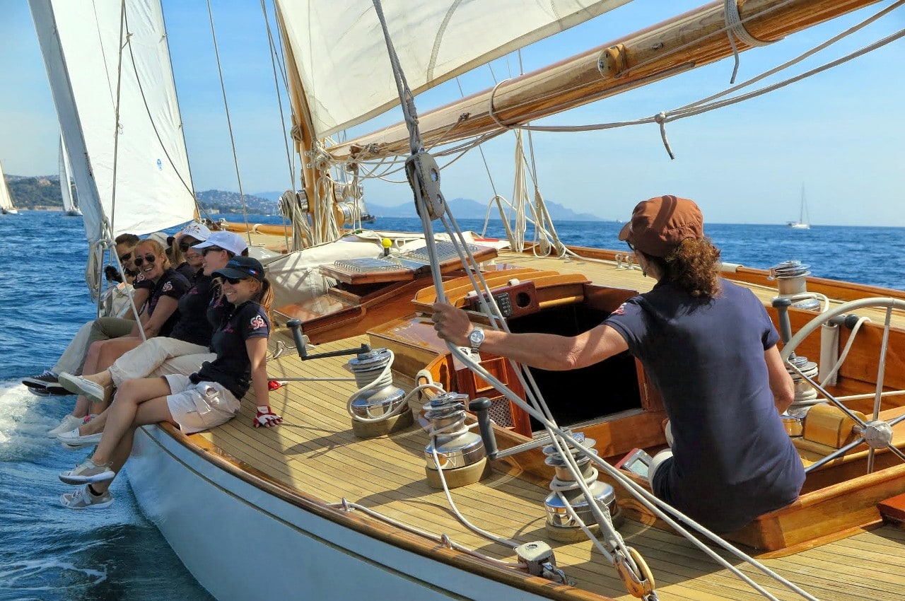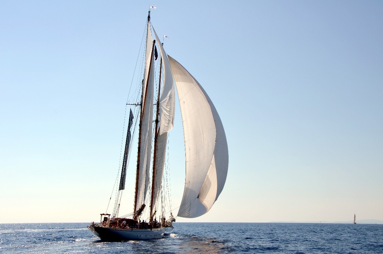 La grande goélette construite en 2009 sur plan Herreshoff n’a laissé à personne le privilège d’entrer en tête des 49 voiliers classiques dans le golfe de Saint-Tropez, en provenance de Cannes.