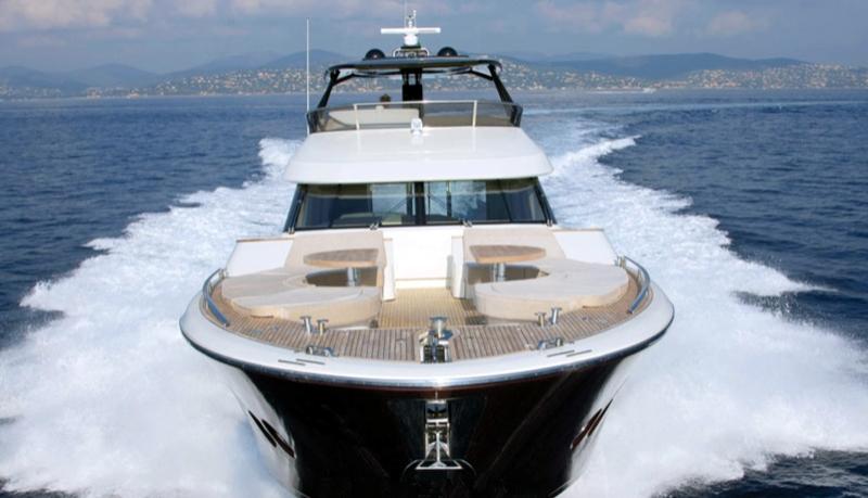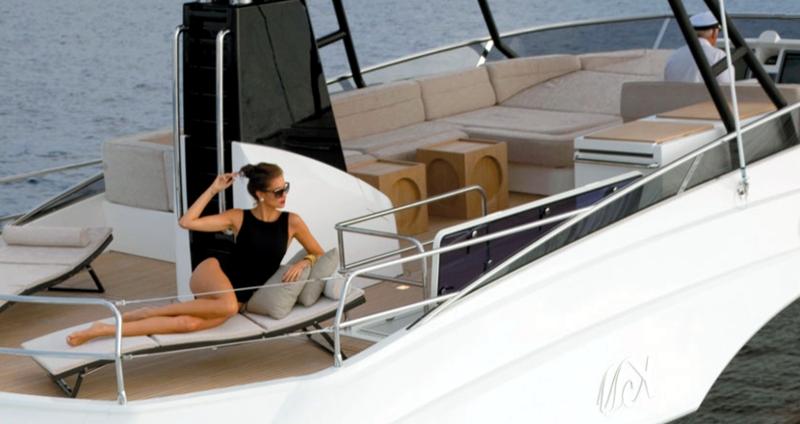 “Si l’étrave est si haute, c’est que le pont a été rehaussé afin d’aménager à l’avant, sur toute la largeur, un espace de détente comprenant deux salons symétriques équipés de tables réglables en teck. C’est l’un des points forts du bateau, un endroit où l’on se sent parfaitement bien au mouillage et que l’on fréquentera volontiers une fois au port sans être vus des badauds”… m’a alors dit mon italienne, dans un Français parfait…