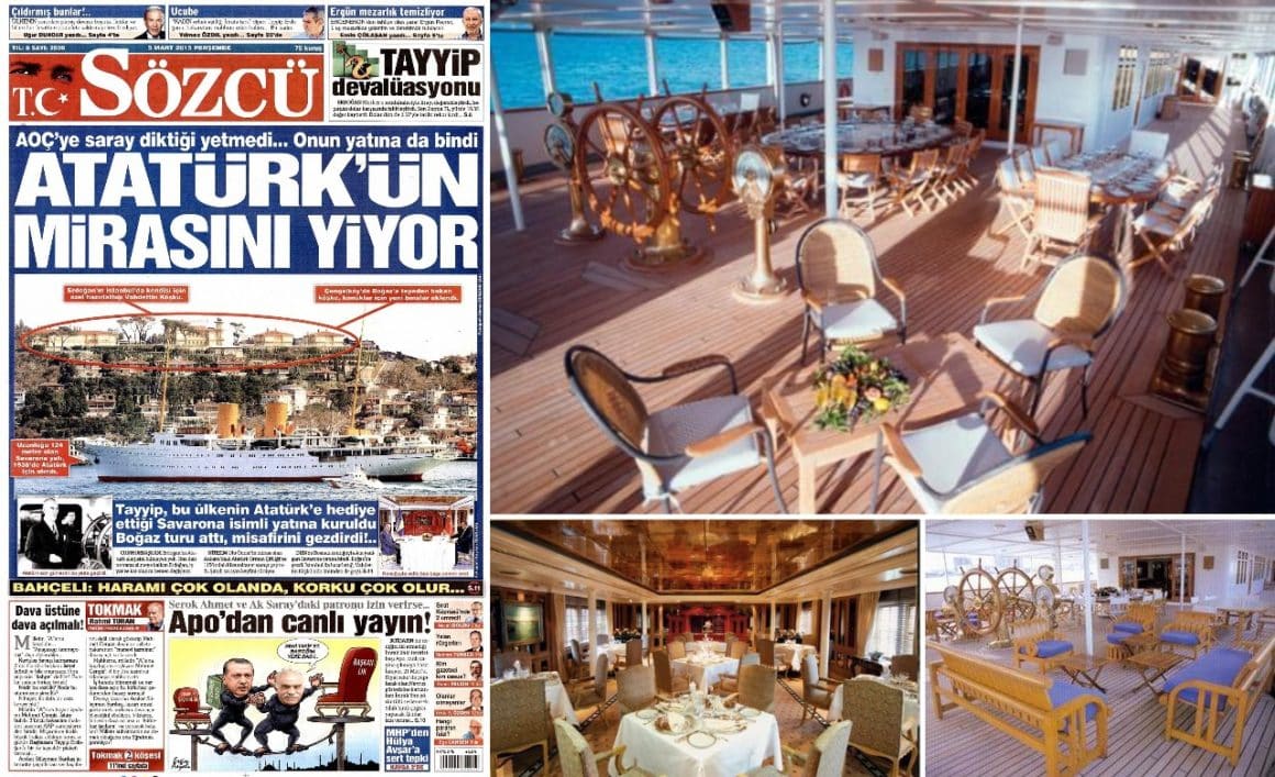 La presse Turque a appuyé ce “retour” en rappelant que, acquis en 1938 par l’État turc, le Savarona était l’un des éléments forts du décor mythique qui entoure l’image du fondateur de la Turquie moderne, bien que ce dernier n’y ait séjourné que quelques semaines avant sa mort… et soulignant que l’intervention de la police, qui avait arrêté une dizaine de prostituées russes et ukrainiennes, avait démontré que le célèbre navire abritait en fait des croisières d’un genre très particulier, ce qui a semé la consternation dans la population…