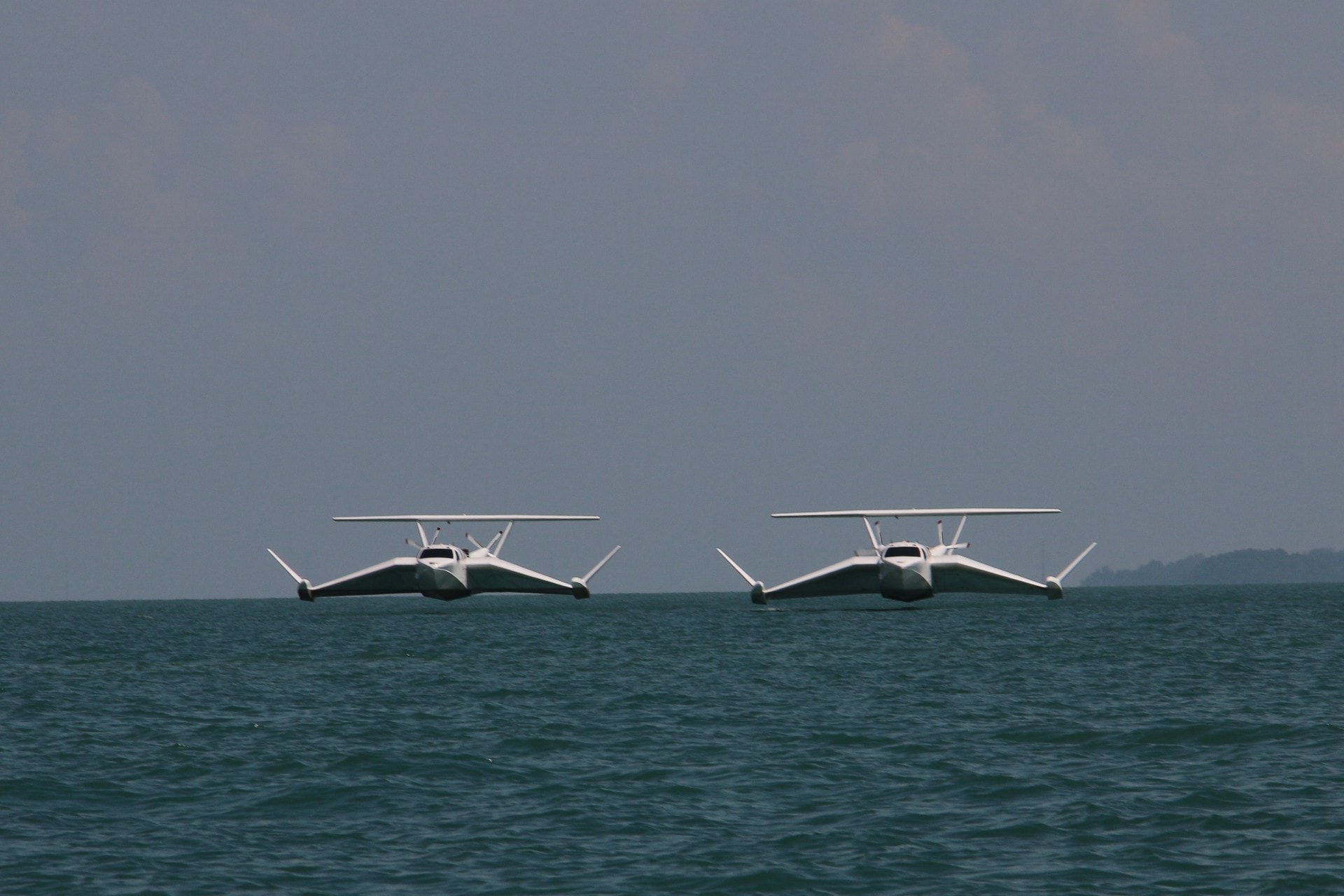 Imaginez un bateau qui glisse sans effort à travers les vagues, pas de turbulence dans l’air, pas d’inconfort par suite des mouvements de l’eau. Il navigue (ou vole au ras des flots) à une vitesse deux à trois fois plus rapide que n’importe quel autre bateau, fusse un Off-Shore (ce qui n’est pas fiscal mais s’avère fonctionner selon le même principe). L’Airfish-8 de Wigetworks est l’idéal pour qui vit et s’affaire dans des endroits paradisiaques et désire se rendre rapidement en une destination semblable, en grand style et originalité. La société Wigetworks basée à Singapour repousse les limites de la technologie d’effet de sol, et vise à être la première à commercialiser ce type d’engin marin pour des applications commerciales et militaires.
