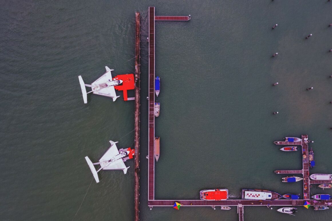 J’ai rendez-vous à Raffles Marina à 6h45 pour un trajet jusqu’à Malacca en compagnie du capitaine Walker D. Mills du Corps des Marines des États-Unis, du commandant Dylan “Joose” Phillips-Levine de l’US Navy, et du capitaine Joshua Taylor de la Marine américaine. Le responsable de Wigetworks a emballé des sandwichs aux œufs et au bacon pour satisfaire aux dispositions de survie d’urgence. Après un examen de l’Airfish-8 et un mémoire de sécurité, nous nous sommes assis sur la base de l’aile gauche pendant que nous étions informés des aspects pratiques et techniques de l’engin et de ce à quoi nous pouvions nous attendre en termes de conditions météorologiques et de possibilités de décollage, de vol et de survie en cas d’avarie. L’équipe de Wigetworks a alors commencé à remorquer l’Airfish-8 dans la zone de décollage… et lorsque le moteur s’est littéralement “enflammé”, il était toutefois encore raisonnablement possible de tenir une conversation.