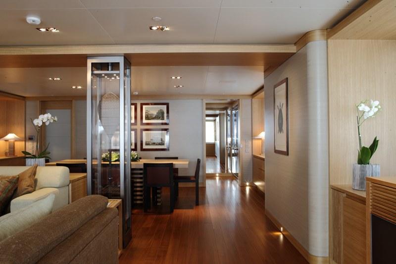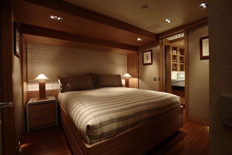 Les trois cabines destinées aux invités (deux VIP et une double) et une salle de sport qui peut se transformer en quatrième cabine grâce à deux lits pullman convertibles sont au niveau inférieur.