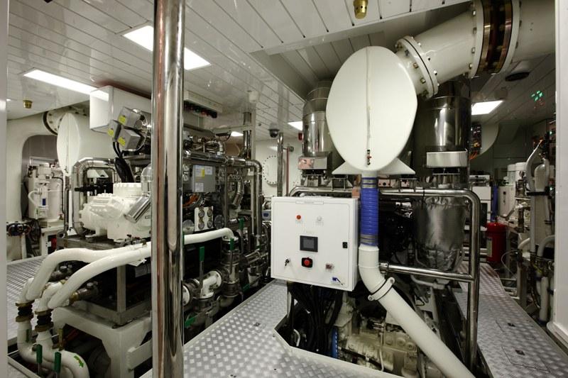 En plus des deux moteurs installés en ligne d’arbre, elle abrite les générateurs principaux, le groupe pour l’air conditionné et le système de traitement des eaux usées.