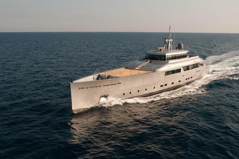 La coque en aluminium d’Exuma a été réalisée selon le principe BOS® Hull (Briand Optimized Stretched Hull) qui, dans ce cas précis, permet d’avoir une jauge de 497 GT, un déplacement à pleine charge de 400 tounes, un tirant d’eau de seulement 2,30 mètres et une autonomie de 5 500 milles à 12 nœuds.