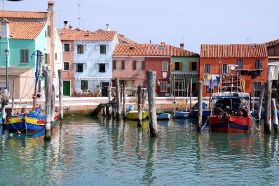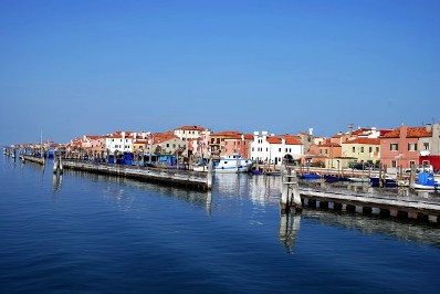 Les jolies maisons ocres, jaunes, vertes, bleues, tournent leur façades vers la lagune.