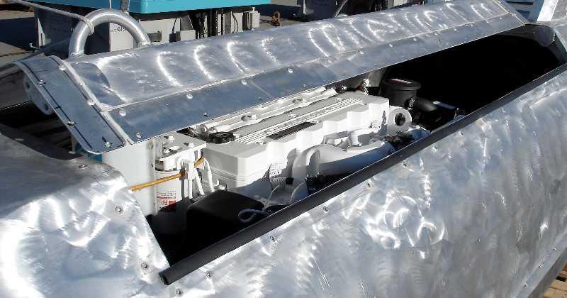 Les compartiments moteur sont rattachés aux flotteurs par un système de charnières qui leur permet de rester dans l’eau, y compris lorsque le bateau “vole” au-dessus des vagues.