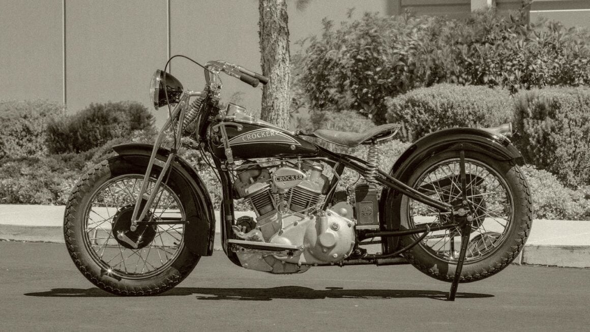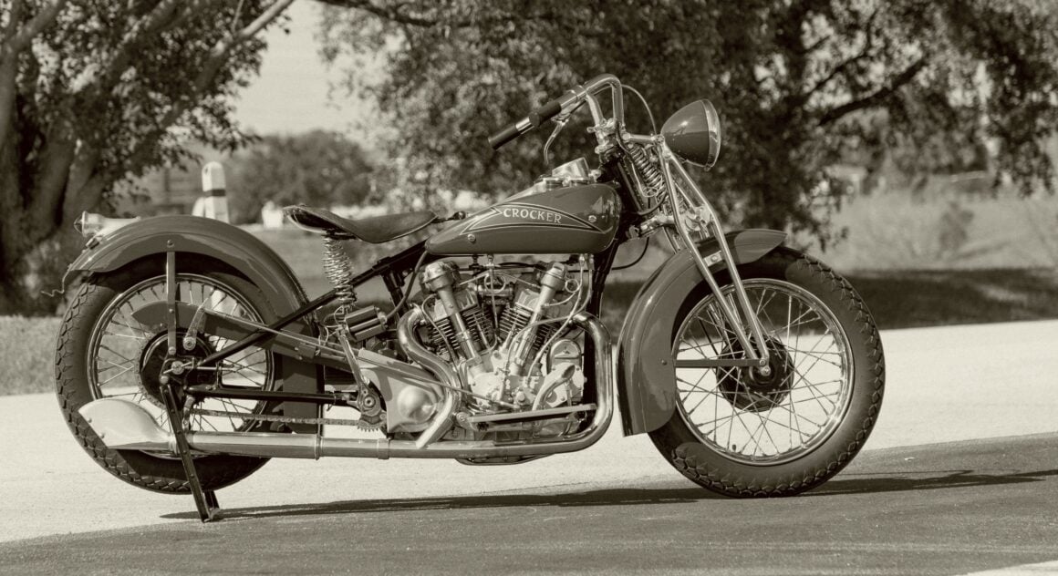 En 1933, Indian n’avait pas de nouvelles motos de compétition, alors Crocker a pris sur lui d’en construire une. Avec l’aide de l’ancien ingénieur Indian Paul Bigsby, le duo a d’abord créé un cadre, puis un moteur monocylindre OHV de 500 cc, avant de finalement lancer la première moto Crocker-Speedway en novembre de la même année.