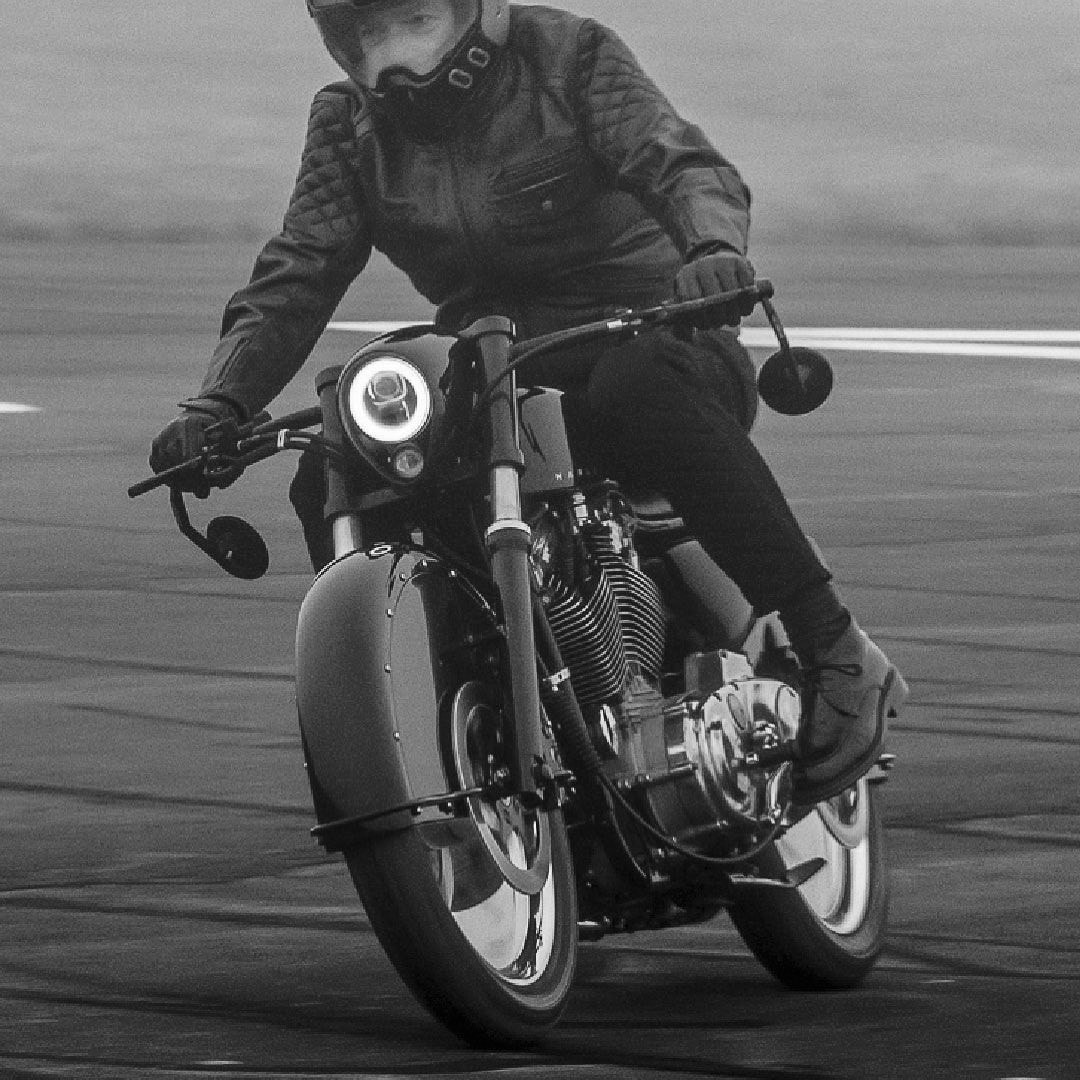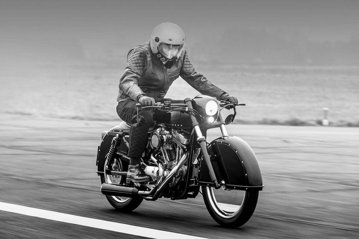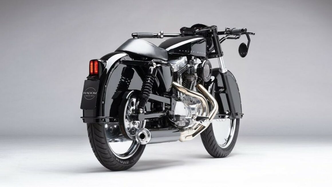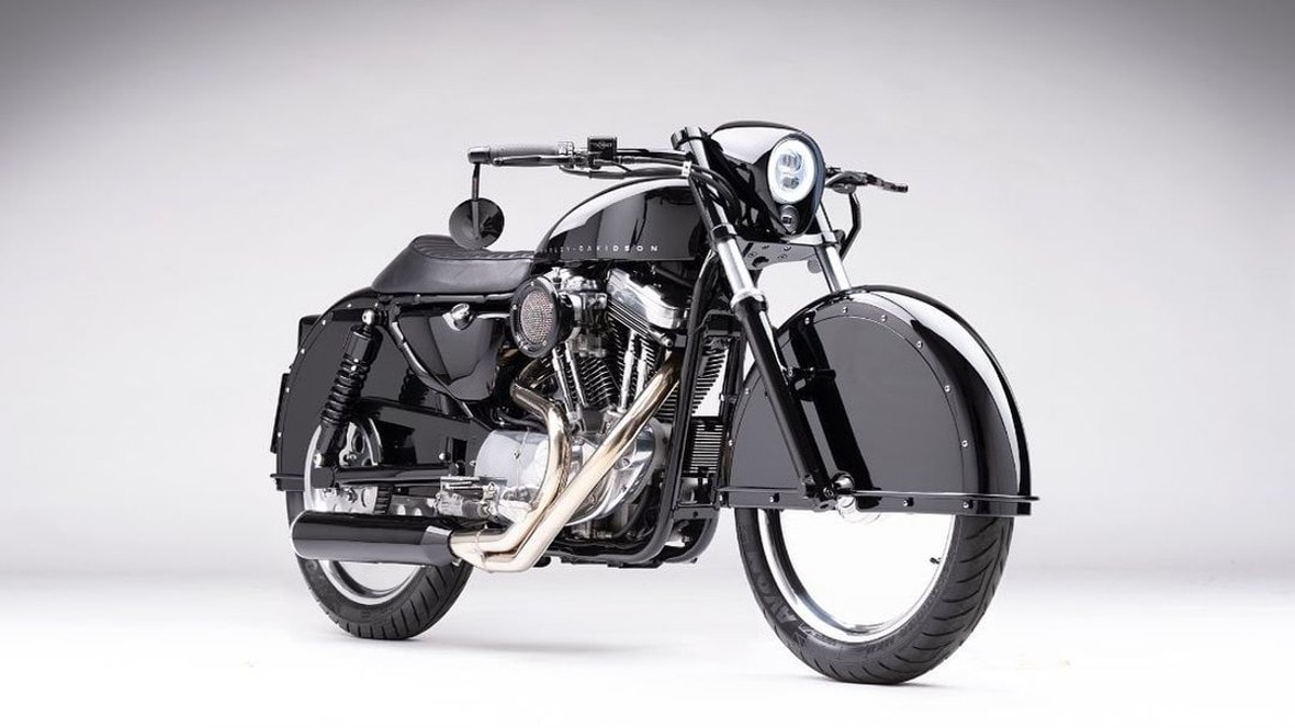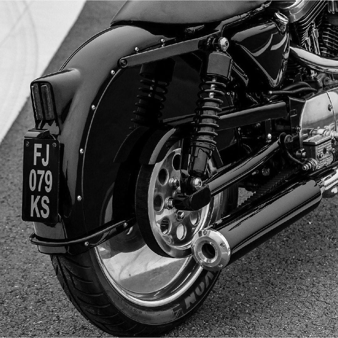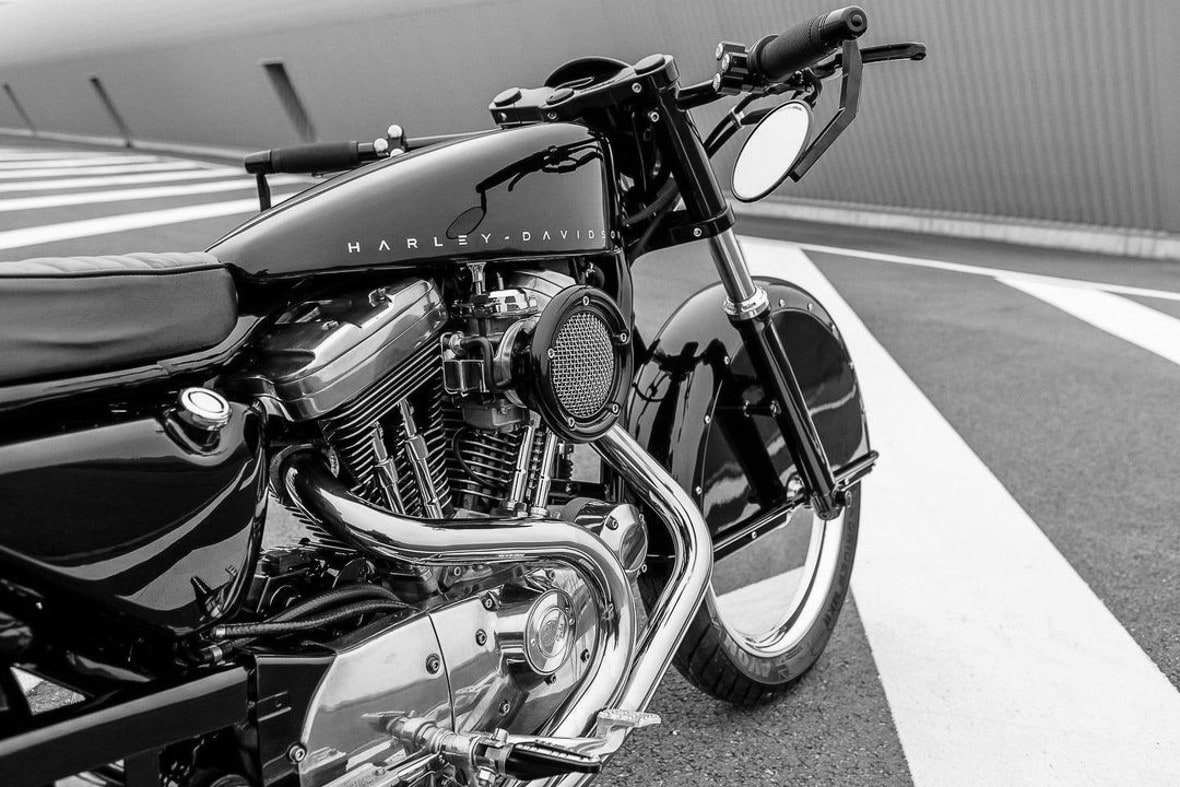 Dissimulant entièrement la moitié supérieure de chaque roue, ils sont ornés de rivets pour une apparence rétro distincte qui rappelle quelque peu les trains et avions vintage. L’arrière porte un support de plaque d’immatriculation fait à la main et deux feux arrière à LED montés juste au-dessus côte à côte. Cédric a également fabriqué un réservoir de carburant élégant, qui a l’air incroyablement mince et délicat par rapport aux ailes robustes installées plus bas. En substance, l’idée était de garder la majeure partie de la masse visuelle du Sportster, tout en rendant sa partie supérieure aussi minimaliste que possible. Pour son acte de clôture, Cédric a façonné un discret carénage de tête de fourche abritant le phare pour l’avant de la moto, assorti au garde-boue.